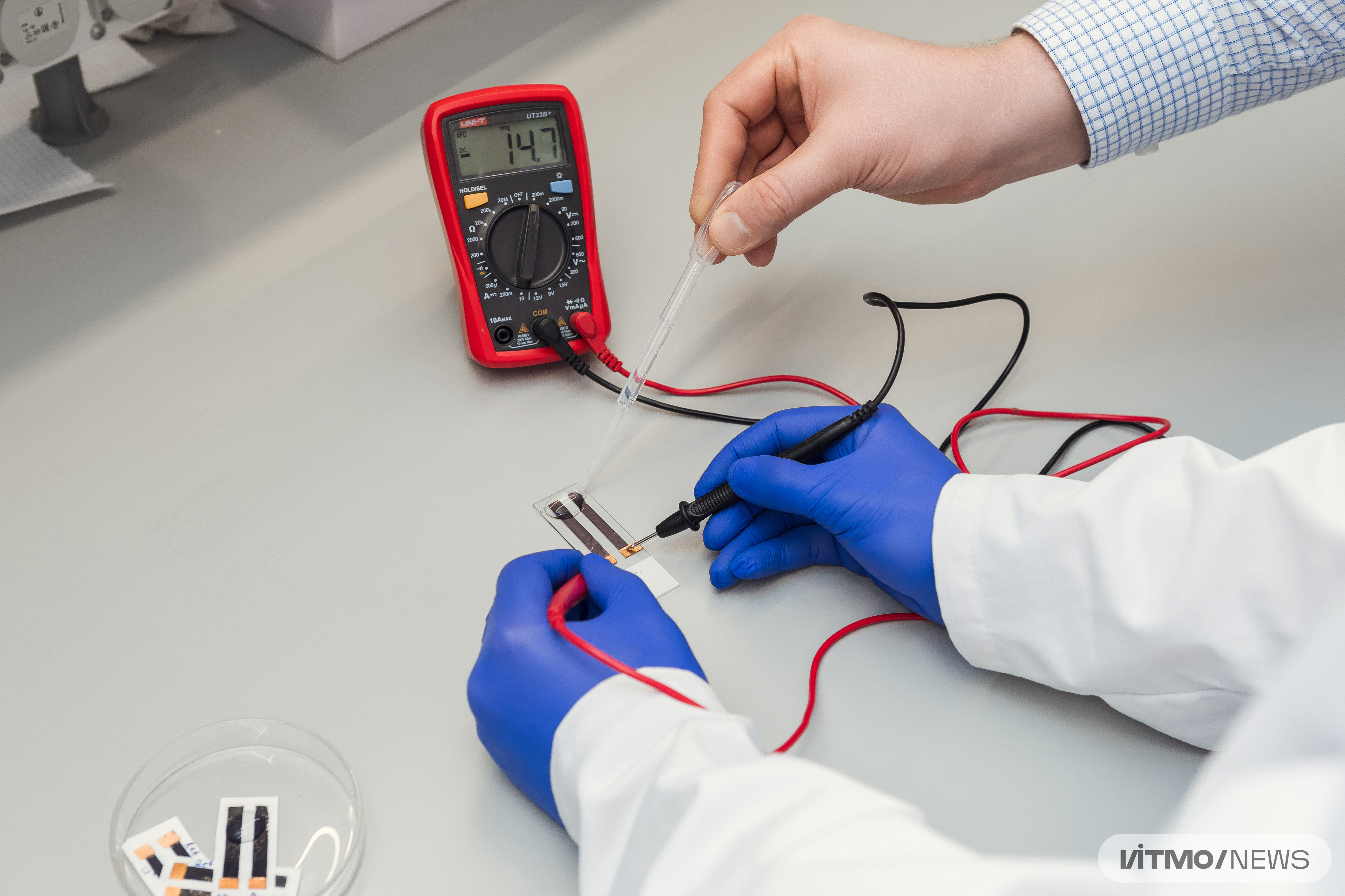 ITMO has developed a new type of sensor with the simplest possible design based on MXene, a two—dimensional titanium carbide material. Its size does not exceed 1 cm in length and 3-4 mm in thickness. Due to their composition and size, the sensors are highly sensitive. 100 microliters is enough to detect calcium, which is just a few drops of liquid. At the same time, most analogues have larger dimensions, due to which they require a larger volume of liquid for analysis.
