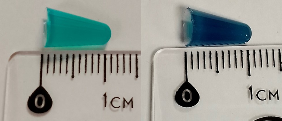 Изменение цвета композита во влажной среде (слева) и при нагревании (справа). Источник: Сергей Кутумов
