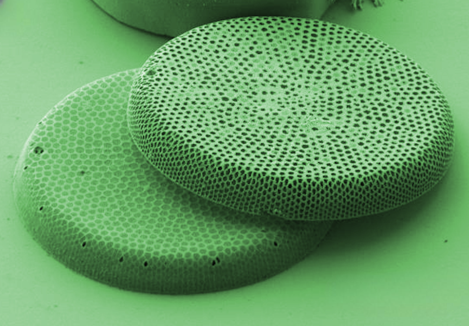 Отличительная черта диатомовых — жесткая клеточная стенка из диоксида кремния. Такой панцирь напоминает стекло и пронизан множеством отверстий, образующих узор. Он защищает водоросль, участвует в выводе продуктов жизнедеятельности, захвате питательных веществ, а также взаимодействует с падающими солнечными лучами, чтобы максимально использовать энергию, проходящую через толщу воды.