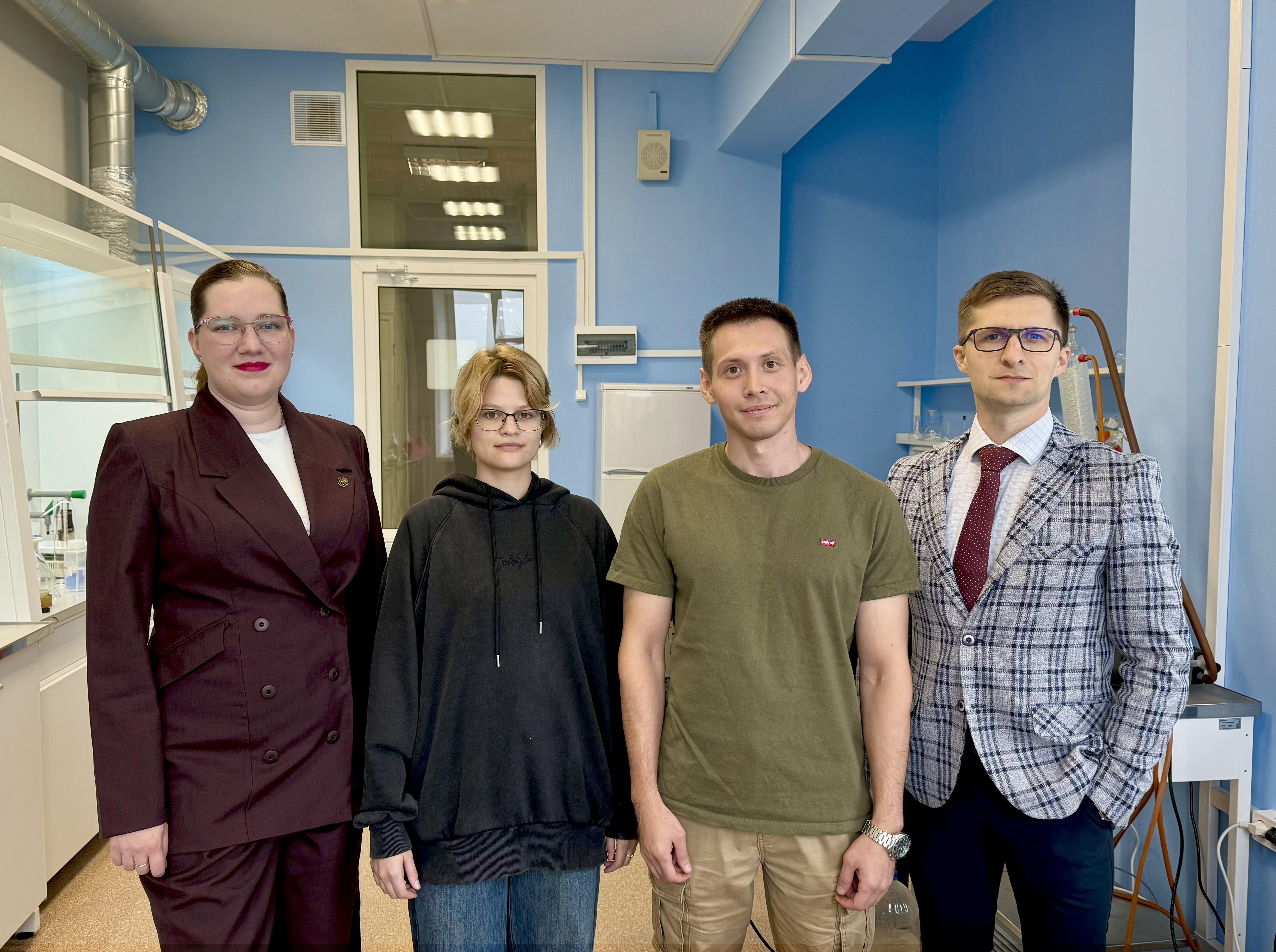 Авторы исследования: ассистент Института химии Александра Сысоева, старший преподаватель Михаил Ильин, студентка магистратуры Яна Сафинская, руководитель проекта Дмитрий Болотин. Источник: Дмитрий Болотин