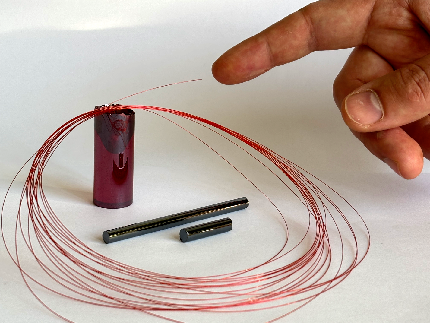 Ученым из Института химии высокочистых веществ имени Г.Г. Девятых РАН (ред. - Пресс-служба РНФ) удалось решить эту проблему при помощи оптоволокна, изготовленного из стекла из селенидов галлия-германия-сурьмы, в которое ученые добавили небольшое количество ионов празеодима - редкоземельного элемента, чьи атомы придают стеклу бледно-зеленую окраску. Также химикам удалось добиться сверхнизкой доли примесей в этом материале, менее 0,0001%, что обеспечило высокую мощность лазера и позволило ему работать на длине волны в 5,6-5,83 мкм при использовании обычного инфракрасного диода для возбуждения излучения.