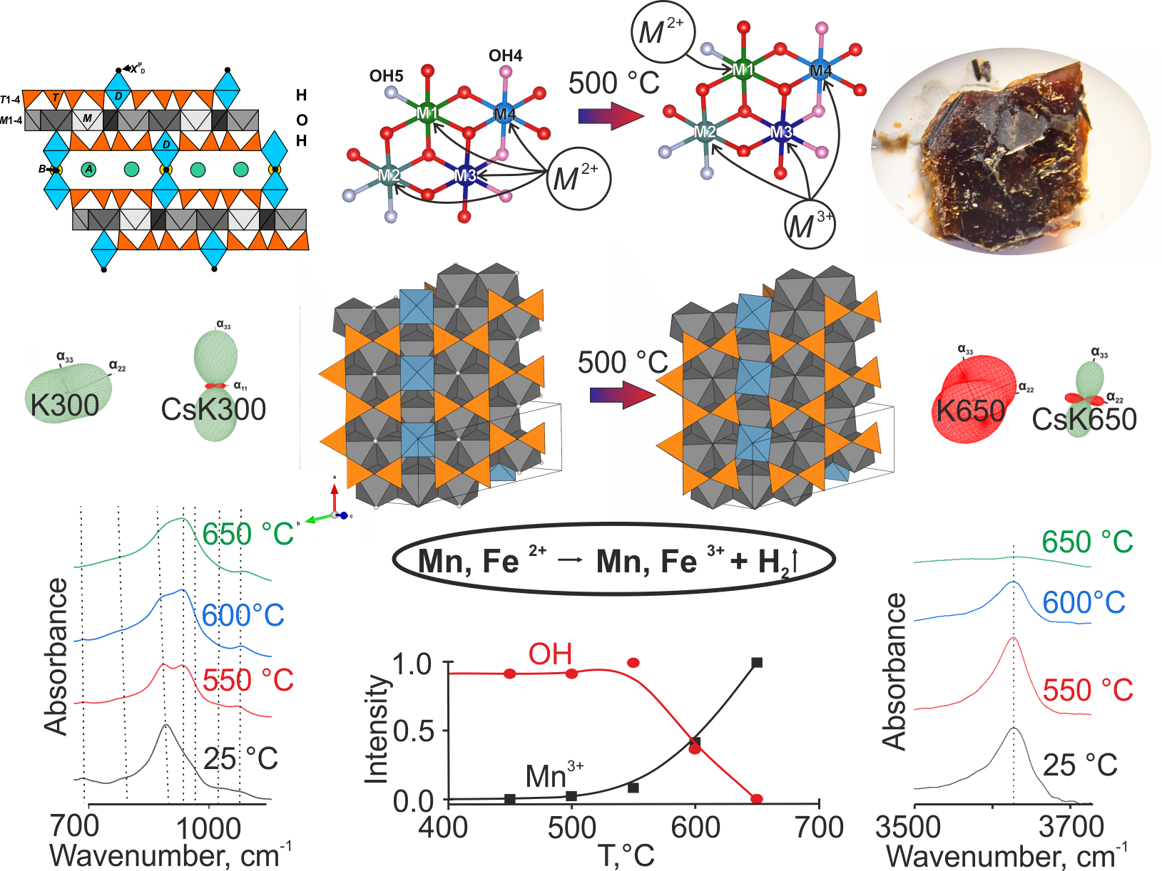 Оказалось, что при нагревании до температуры 500℃ кристаллические структуры минералов расширялись, после чего происходило их резкое сжатие. Детальное исследование показало, что это сжатие связано с окислением — отдачей электронов — марганца, которое сопровождается потерей воды соединением. Таким образом, авторы впервые установили, что окисление марганца под воздействием температуры происходит подобно процессам, связанным с окислением железа, и сопряжено с «обезвоживанием» минерала. Учитывая широкое распространение реакций окисления железа в породообразующих минералах — амфиболах, турмалинах, слюдах и глинах, — можно предположить подобное поведение и для их марганцевых аналогов.