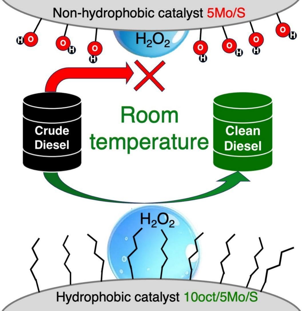 За основу авторы взяли традиционный для промышленных катализаторов носитель — оксид алюминия, к поверхности которого в разных количествах химически «пришили» оксид молибдена и сульфогруппы, которые служат активными центрами и обеспечивают превращение сероорганических соединений. Затем на поверхности полученных материалов «закрепили» гидрофобные («боящиеся» воды) органические молекулы. Это позволило избежать не только слипания частиц катализатора и тем самым повысить его активность, но и улучшить стабильность.