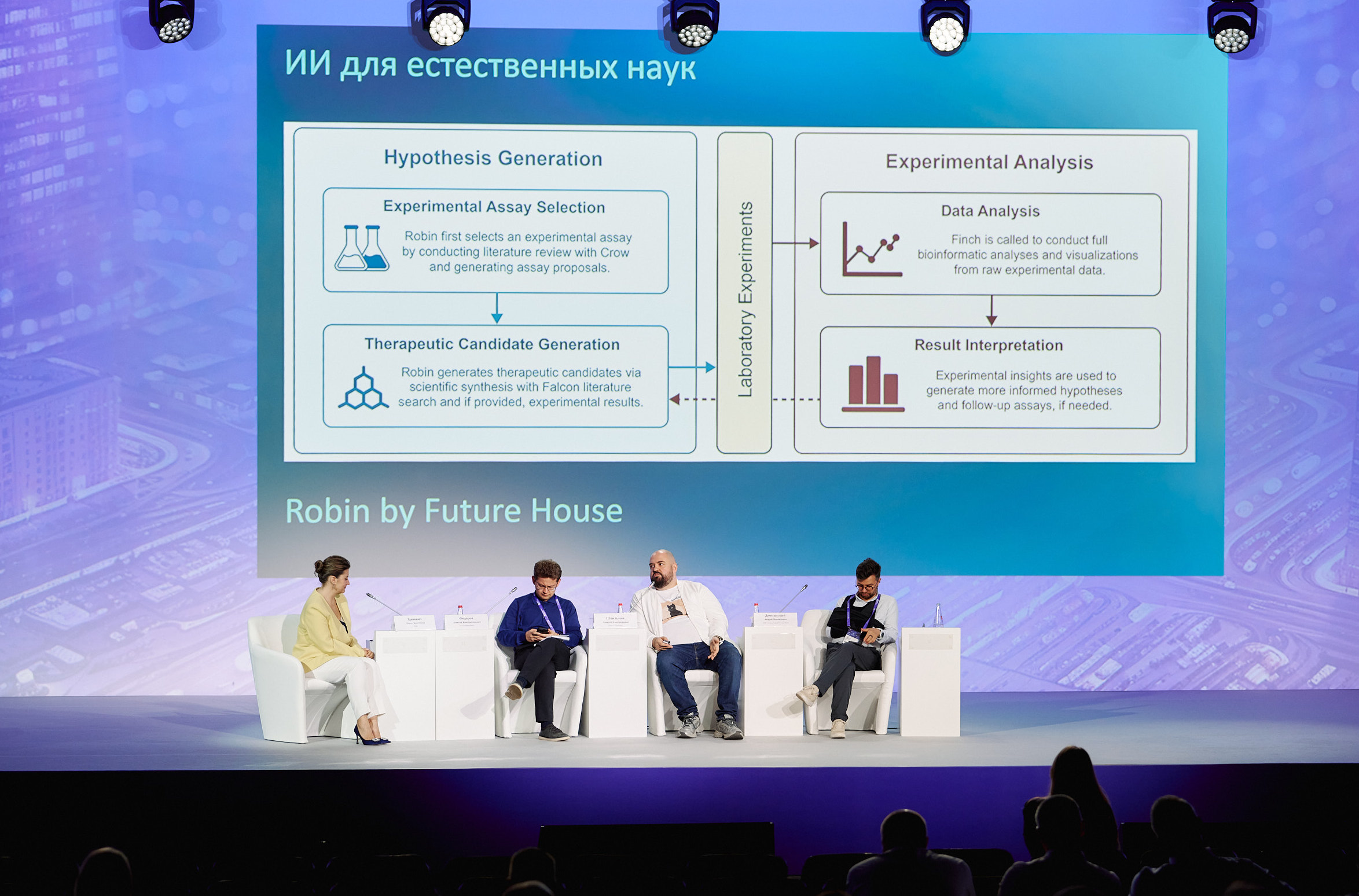 Практическую сторону использования новых инструментов в науке осветил Алексей Шпильман, управляющий директор блока «Технологическое развитие» Сбербанка. Он привел конкретные примеры применения инструментов ИИ на разных этапах исследований — от анализа больших данных и генерации гипотез до планирования экспериментов и интерпретации их результатов. По его словам, современный ученый все чаще формулирует задачу как запрос к AI-сервису, получая ответ в любом требуемом формате.