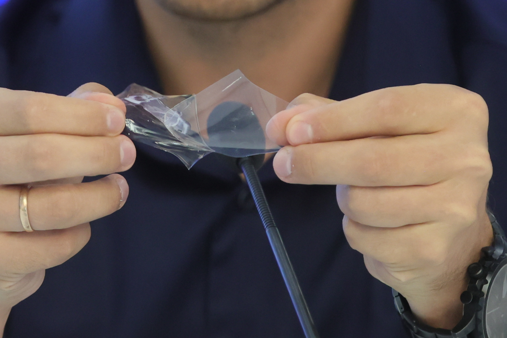 Заведующий лабораторией Сеченовского университета, старший научный сотрудник Научно-исследовательского центра LIFT Алексей Ермаков продемонстрировал покрытие участникам пресс-конференции и подчеркнул, что разработанный биоматериал можно использовать не только для лечения ран, но и на разных поверхностях — имплантатах, медицинских стентах и катетерах.