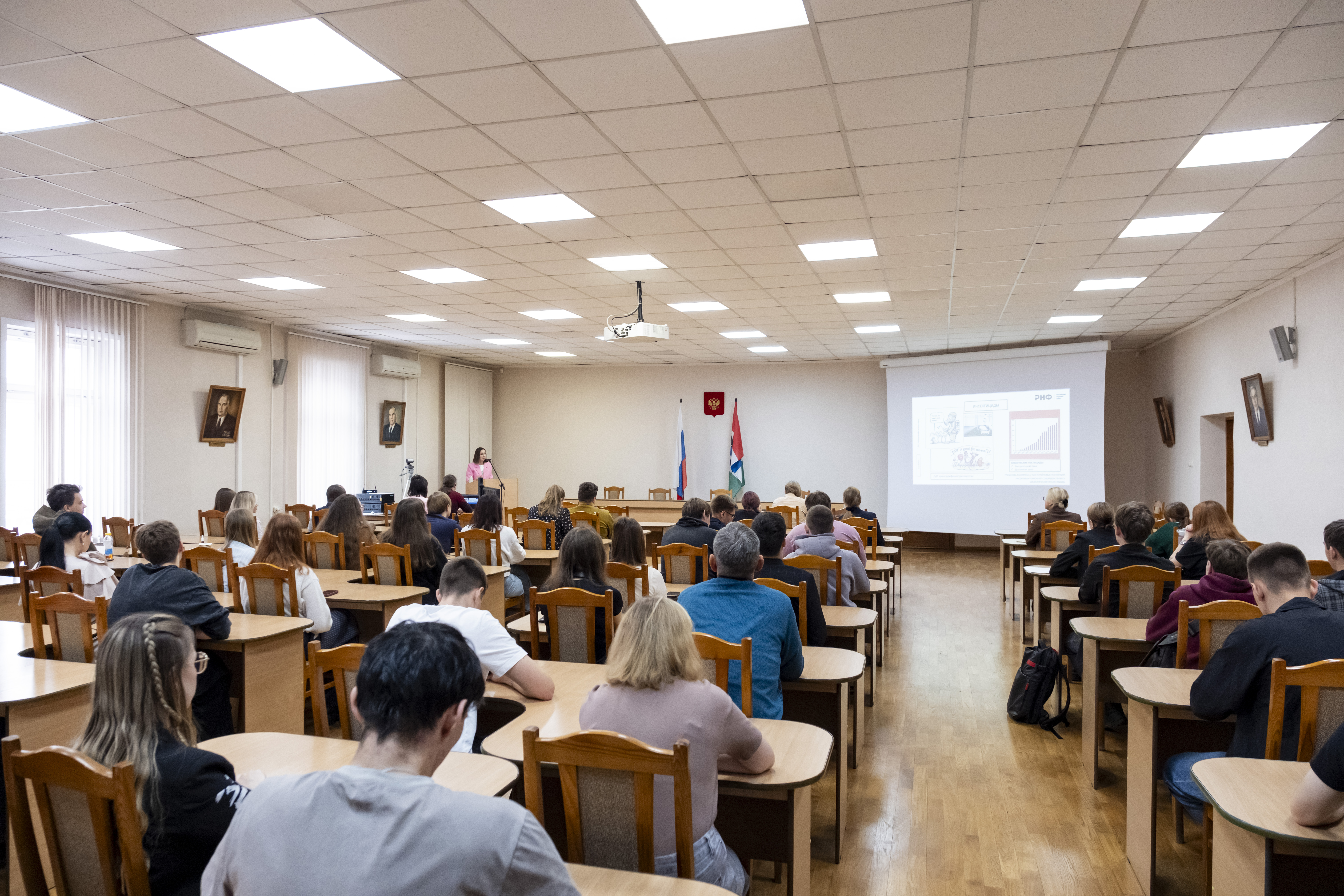 Лекция кандидата биологических наук, доцента кафедры защиты растений Новосибирского ГАУ Марина Селюк в рамках Всероссийского лектория РНФ 2025. Источник: пресс-служба Новосибирского ГАУ