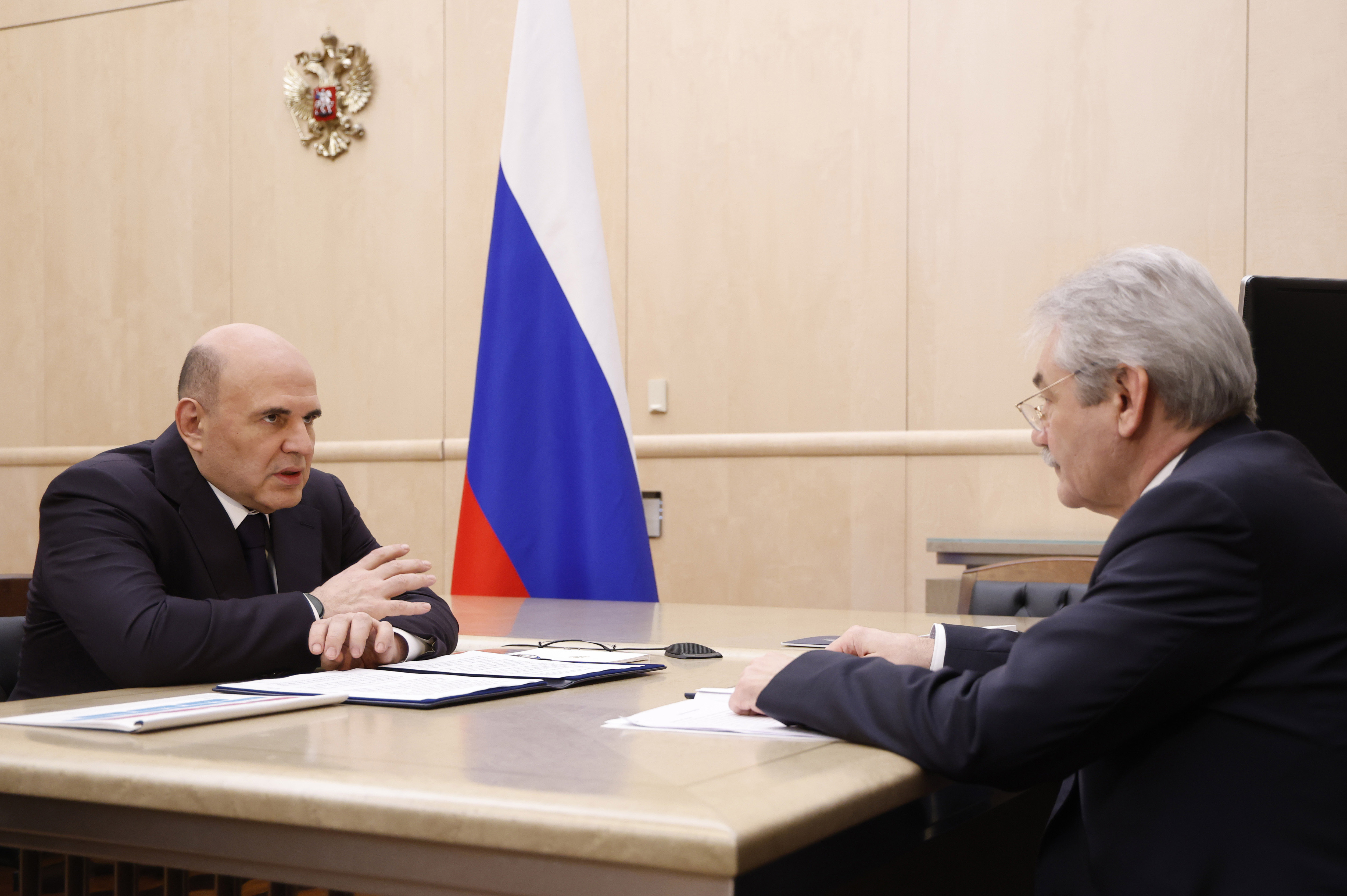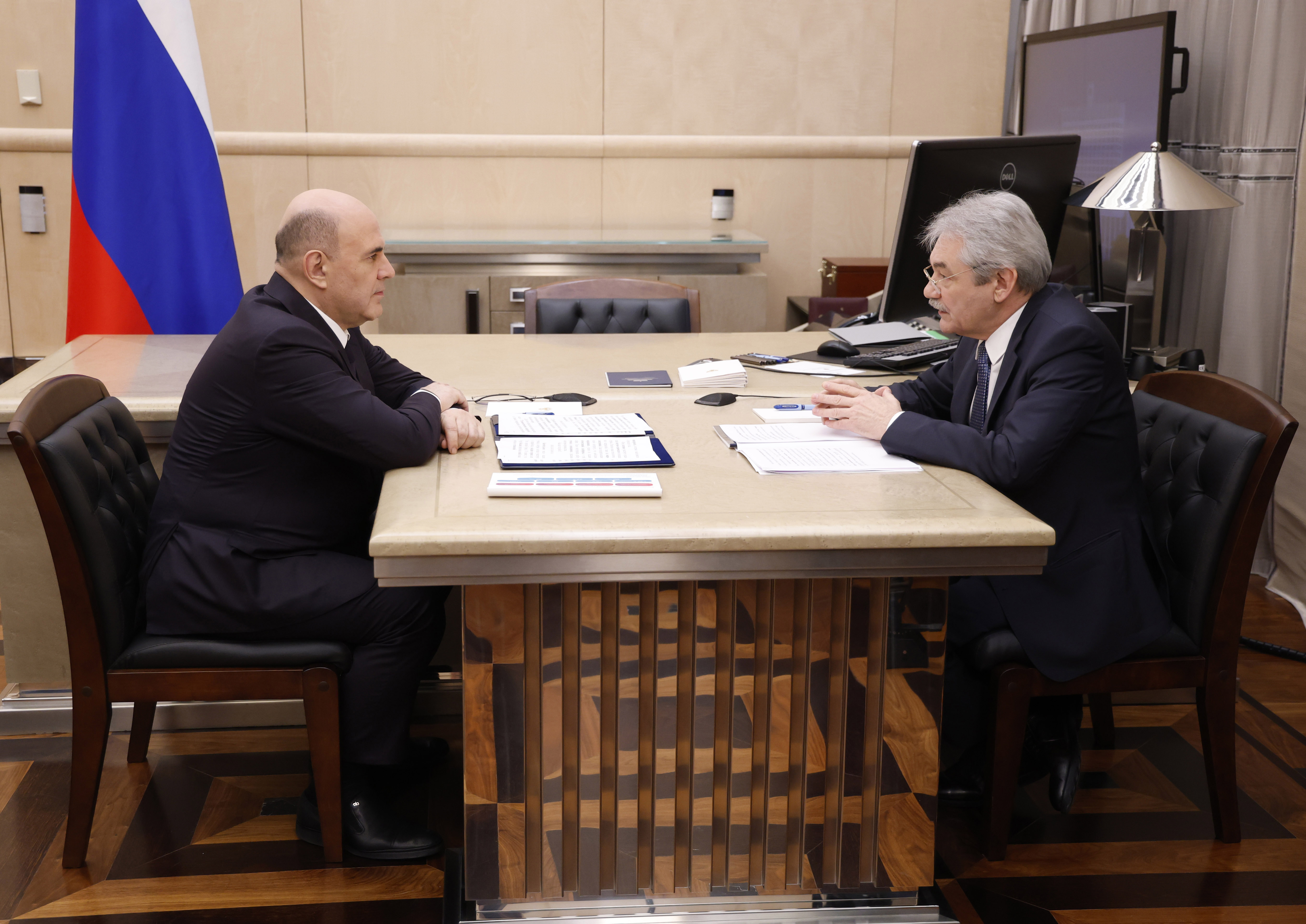 Встреча Михаила Мишустина с генеральным директором РНФ Владимиром Беспаловым. Источник: Пресс-служба Правительства России