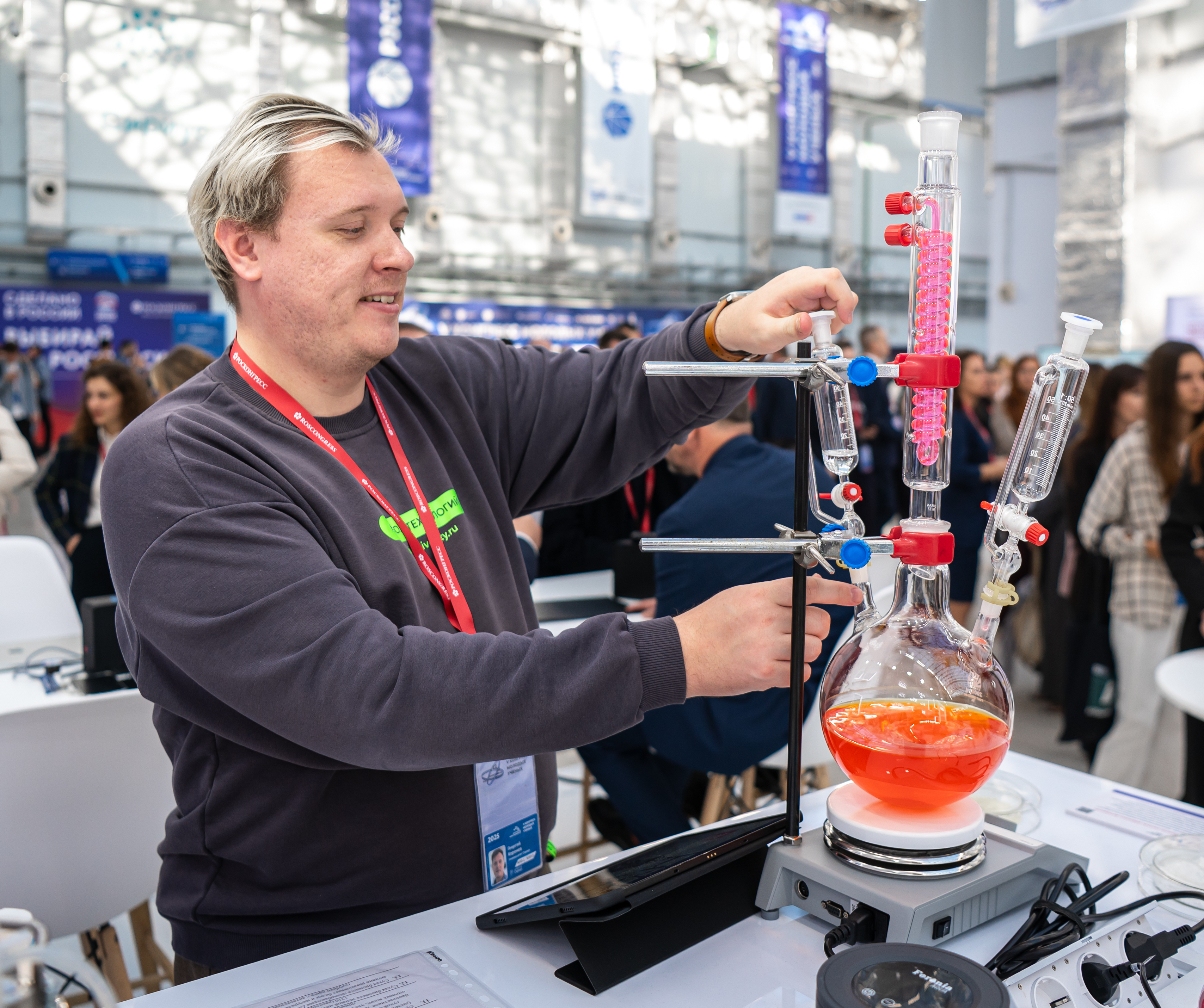 На стенде в виде экспонатов были представлены результаты работ грантополучателей РНФ в области фундаментальных и прикладных исследований: первые российские субстанции орфанных препаратов, биопрепараты на основе растительных материалов для сельского хозяйства и пищевой промышленности и многие другие. Все участники Конгресса могли познакомиться с ними, а также пообщаться с авторами работ.