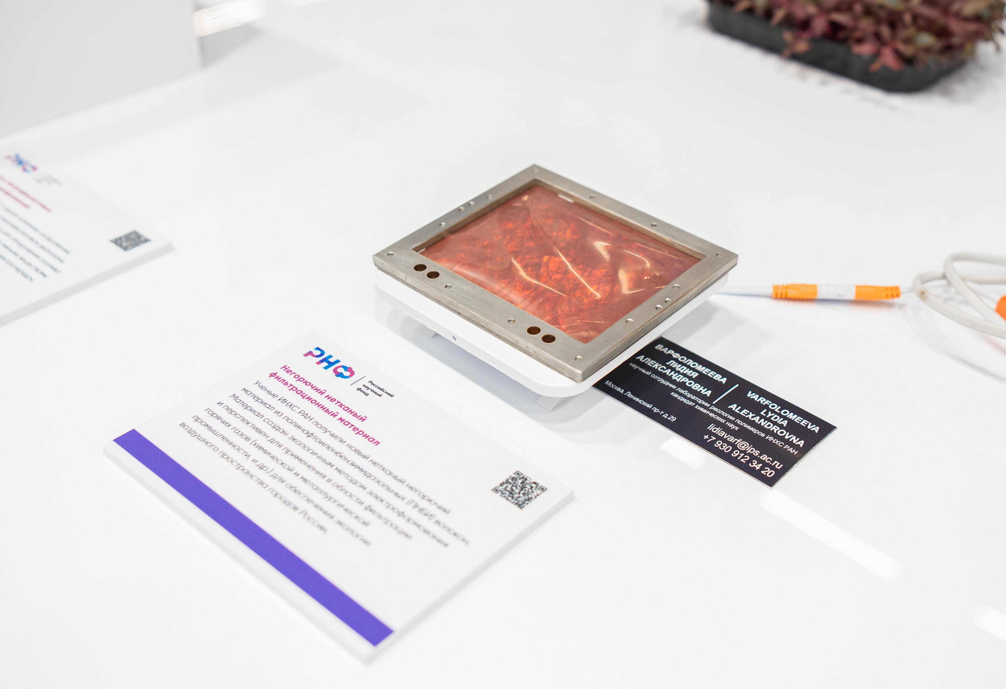 Часть разработок - образцы продукции маслины Никитского ботанического сада, инновационный магний-фосфатный цемент для Арктики от НГУ и перспективные фазовые модификации дигидрокверцетина, изученные в Сеченовском Университете, - можно было увидеть на видео, представленном на интерактивной экспозиции Российского научного фонда.