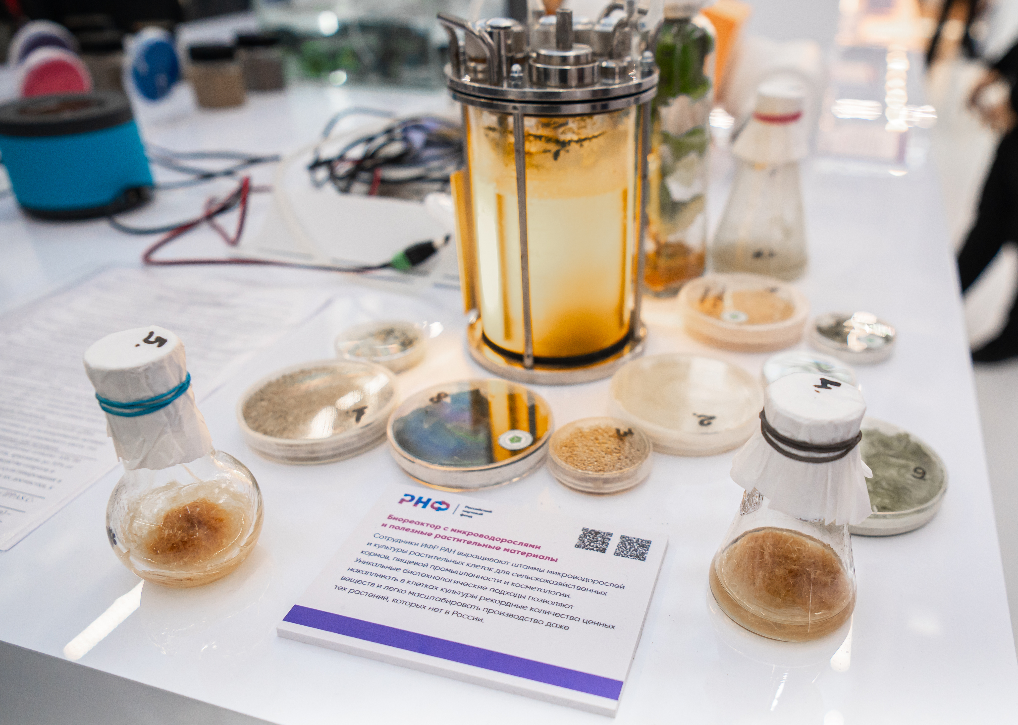 Биореактор с микроводорослями и полезные растительные материалы. Источник: Алёна Енченко, Медиадом «Сириус»