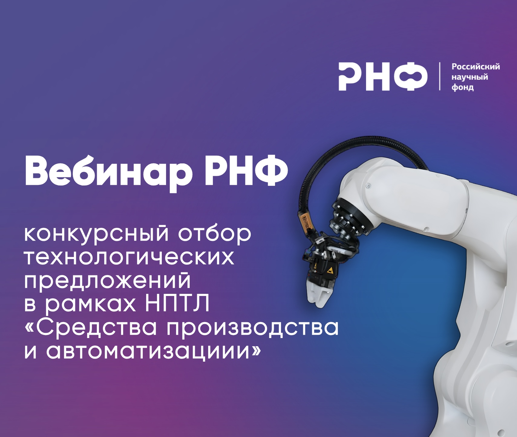 На вебинаре, посвященном вопросам участия в конкурсном отборе технологических предложений №3110 («Средства производства и автоматизации»), сотрудники РНФ рассказали, как стать частью национального проекта технологического лидерства и внести вклад в развитие передовых решений в области средств производства и автоматизации. В ходе встречи были представлены цель и задачи конкурса, ключевые этапы конкурсного отбора, требования к заказчикам технологических предложений. Участники получили рекомендации по оформлению заявки от представителей РНФ и НТС.