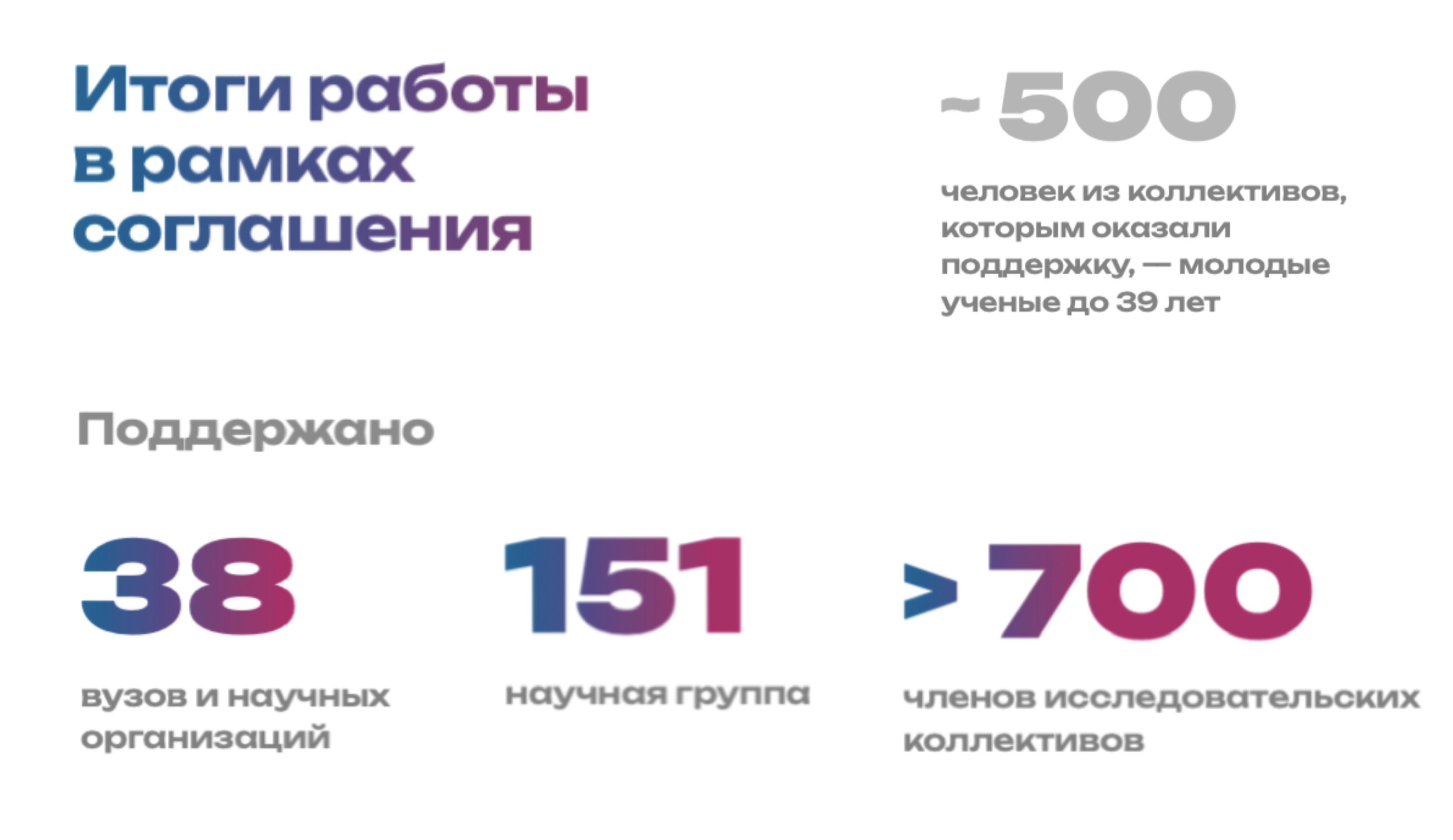 Как я отметил ранее, с 2021 года мы поддержали 151 научный коллектив, столько же руководителей исследовательских проектов, тех, кого обычно в мировой практике называют PI – Principal Investigators. Они готовят заявку, обеспечивают ее исполнение, руководят людьми, распределяют ресурсы. Это наш кадровый потенциал, поскольку субъект развивается преимущественно за счет эффективности и амбициозности этого среднего звена исследователей.