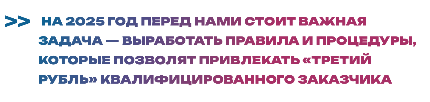 На 2025 год перед нами стоит важная задача – выработать правила и процедуры, которые позволят привлекать «третий рубль» квалифицированного заказчика. Сегодня экспертным советом Санкт-Петербургского научного фонда и РНФ поддержано 5 проектов НИОКР. Они финансируются РНФ, региональным фондом и квалифицированным заказчиком. Проекты реализуются на базе крупнейших образовательных и научных центров города – СПбГУ, ИТМО, Санкт-Петербургского государственного университета промышленных технологий и дизайна, НМИЦ имени В.А. Алмазова Минздрава России и Санкт-Петербургского политехнического университета Петра Великого. В числе заказчиков – ЦНИИ «Электроприбор», ЦНИИ КМ «Прометей», НИИЭФА и другие. Эти организации обладают опытом взаимодействия с научными учреждениями, что позволяет эффективно формулировать научные задачи и внедрять их результаты в промышленность. Как только мы урегулируем нормативно-правовые вопросы, а сам проект перестанет быть пилотным, перед нами встанет ключевая задача по постановке больших целей.