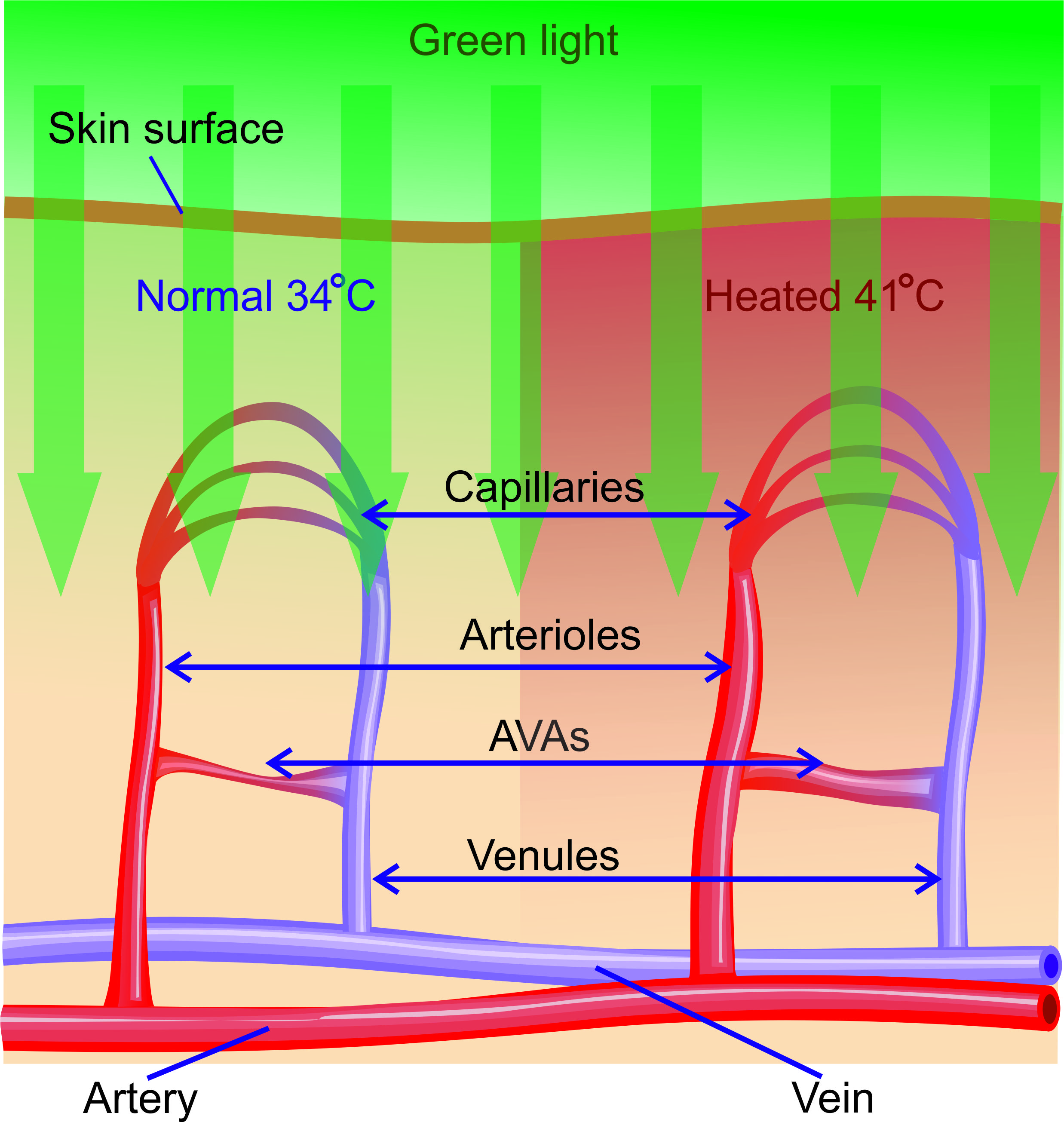 Схема микроциркуляторных узлов и изменений их компонентов под воздействием локального нагрева. Источник: Алексей КамшилинСхема микроциркуляторных узлов и изменений их компонентов под воздействием локального нагрева. Источник: Алексей Камшилин
