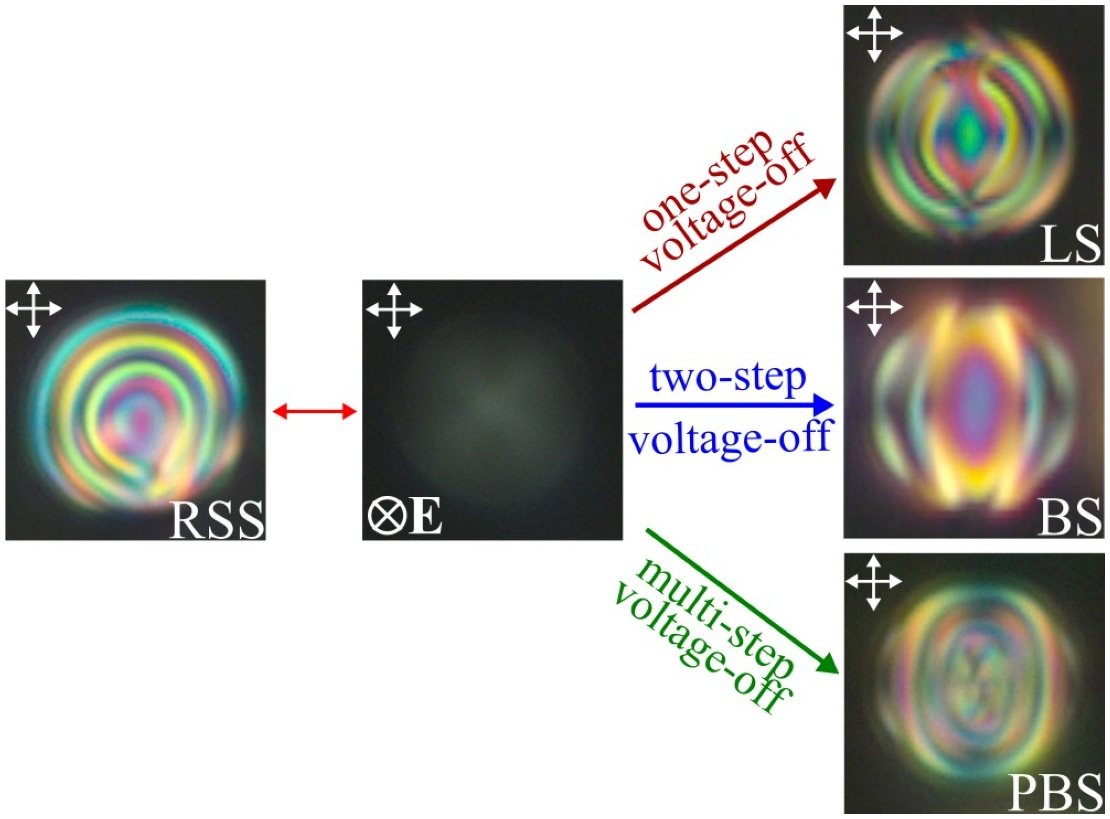 В работе изучались сферические капли жидкого кристалла микронных размеров, помещенные в полимер. Ученые наблюдали сложные «узоры», отражающие структурирование жидкого кристалла внутри капель. В исходном состоянии в каплях формируется радиальная сферическая структура. Она похожа на разрезанную луковицу: имеет слои и определенную симметрию. Когда на каплю действует внешнее электрическое поле, эта структура «раскручивается», молекулы ровно выстраиваются по направлению поля. При разных режимах отключения электрического поля структура в каплях не сразу возвращается в исходную, а собирается в пространственные «узоры», отличающиеся взаимным расположением слоев и дефектов. Такие устойчивые, но не на долгое время, конфигурации специалисты называют метастабильными состояниями. В отличие от стабильных структур, они ограничены во времени от нескольких минут до десятков часов. Для каждого метастабильного состояния характерен свой режим отключения. Таким образом, структуру жидкого кристалла можно переводить в любое метастабильное состояние по желанию.
