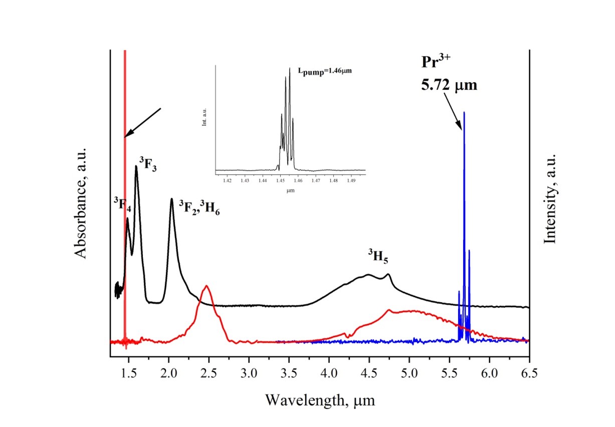 Ученые из Института химии высокочистых веществ имени Г.Г. Девятых РАН (Нижний Новгород) впервые создали волоконный лазер на основе халькогенидного стекла, генерирующий среднее инфракрасное излучение с длиной волны 5,6–5,83 микрометра. Сначала исследователи получили особо чистое селенидное стекло с пониженным содержанием мешающих примесей — водорода, кислорода, металлов и частиц, — в которое добавили празеодим.