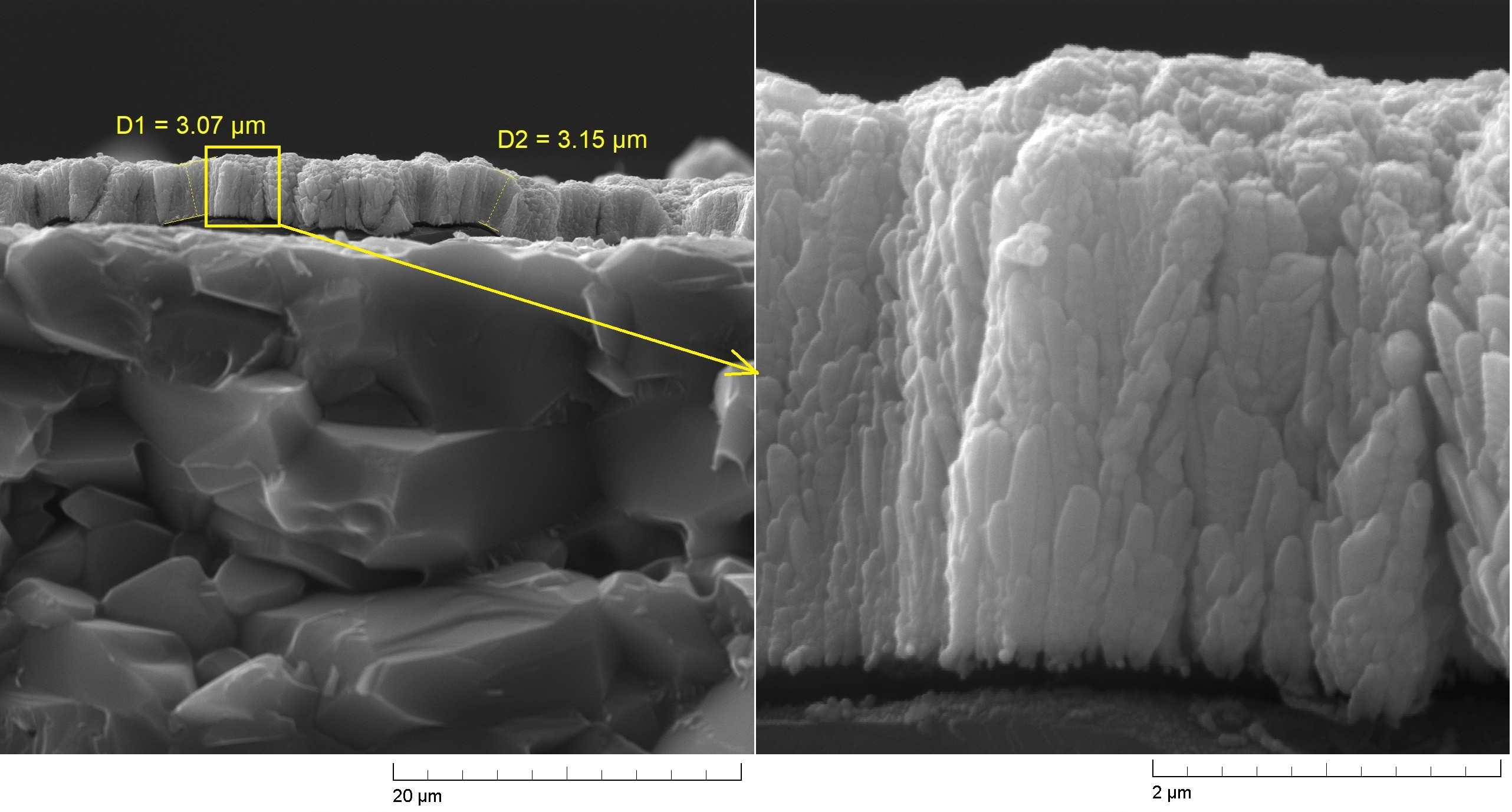 Микроструктура (скол) покрытия молибдена на алюмооксидной керамике. Источник: Александр Фомин