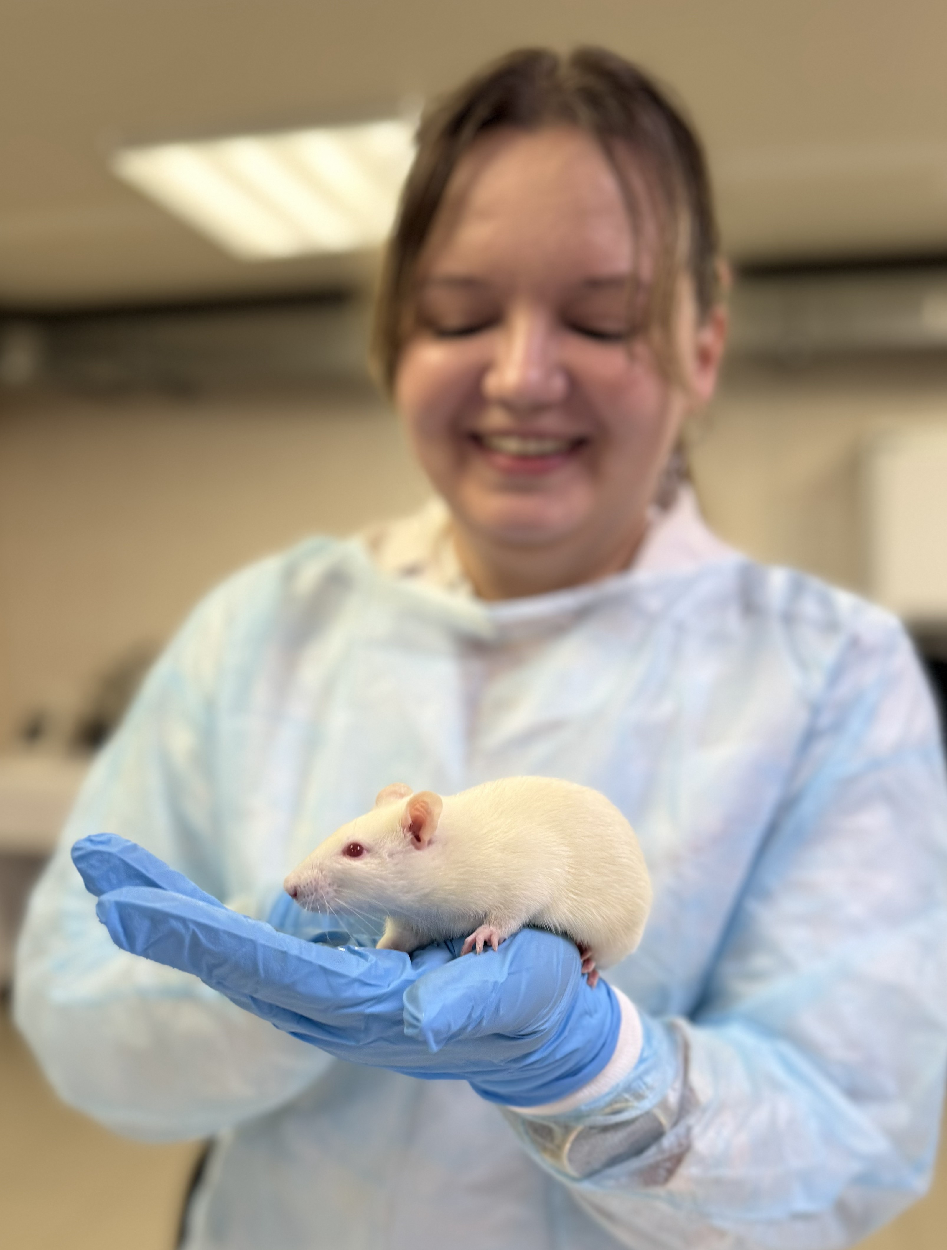 Фотография Веры Козловой с крысой линии Wistar. Источник: НИИ ЭО и БМТ, ФГБОУ ВО «ПИМУ» Минздрава России