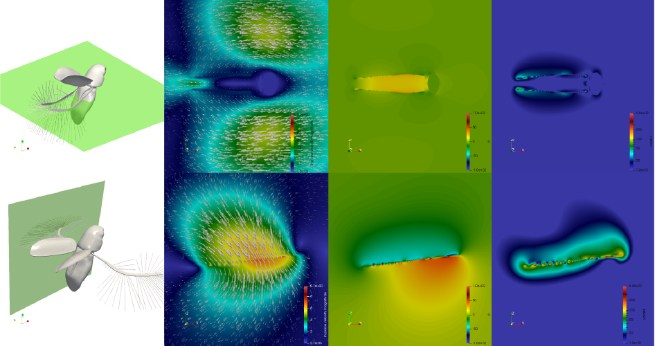 Поля скорости, давления и завихренности потоков воздуха на крыле в двумерных срезах трёхмерной компьютерной симуляции полёта жука-перокрылки Paratuposa placentis. Источник: Farisenkov et al., 2021