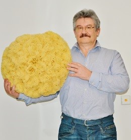 Фото: туалетная губка Spongia officinalis в руках основателя нового научного направления «Экстремальная биомиметика», профессора Германа Эрлиха (Hermann Ehrlich) из Горной академии во Фрайберге, Германия. Источник: Познаньский политехнический университет (Politechnika Poznańska), Польша
