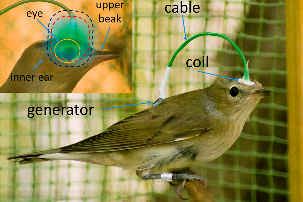 Микрогенераторами как рюкзачками снабдили 22 садовые славки. Это небольшие птички, распространенные по всей территории Европы, которые на время зимовки улетают в Африку. Перехватывали их на пути к южным квартирам в начале осени — на биостанции «Рыбачий» на Куршской косе в Калининградской области. После серии экспериментов оказалось, что птицы как с включенными генераторами, так и с выключенными ведут себя одинаково: помещенные в специальные круглые клетки без доступа к видимым ориентирам они все-таки прыгают в том направлении, куда полетели бы, если бы были свободны, — на юго-запад. А если переменное поле прикладывалось ко всему телу птицы, когда клетку с ней помещали в большую стационарную катушку, животное полностью теряло способность определять направление.