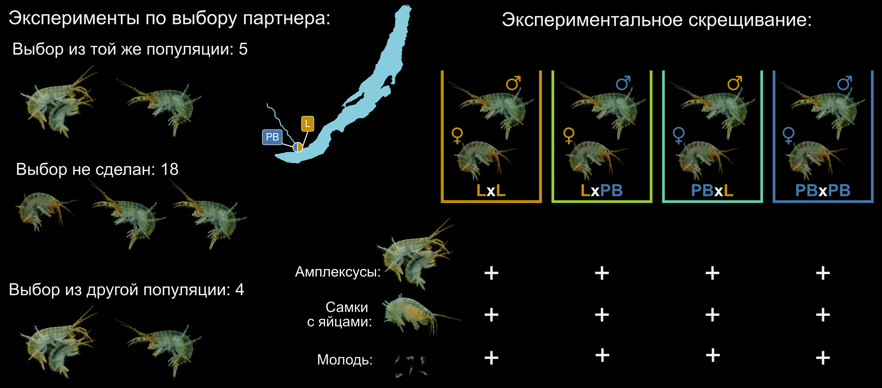 Руководствуясь этой идеей, исследователи поймали четыре десятка особей этого вида беспозвоночных, обитающих вблизи порта Байкал и недалеко от деревни Листвянка — в местах, разделенных истоком Ангары. После этого ученые смешали самцов и самок с разных берегов Ангары и проследили за развитием эмбрионов и появлением потомства.