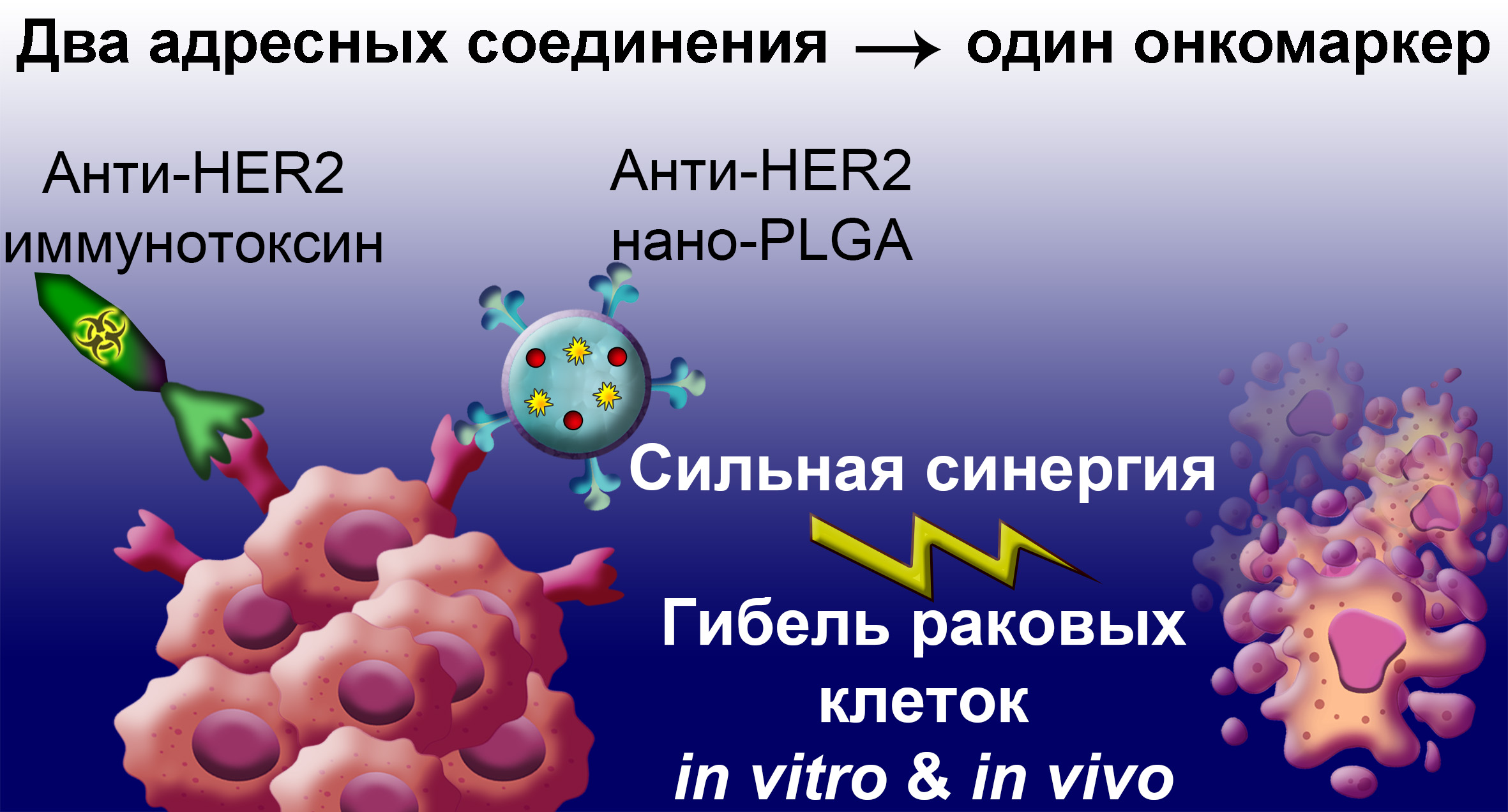 «Использование двух адресных суперструктур позволило в 1000 раз снизить концентрацию действующих веществ для достижения того же терапевтического эффекта. Более того, комбинация этих препаратов действует синергично, то есть одно вещество значительно усиливает действие другого. Это особенно удивительно и неожиданно, поскольку оба препарата воздействуют всего на один клеточный рецептор. Такая синергия позволила значительно усилить эффективность терапии HER2-позитивных опухолей у животных и полностью предотвратить появление метастазов», — рассказывает Виктория Шипунова.