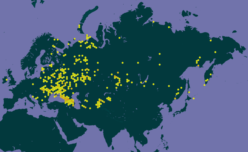 Точки встреч дождевых червей, обобщенные в ходе выполнения проекта РНФ, на портале GBIF. Источник: Максим Шашков, Наталья Иванова, Сергей Ермолов / GBIF