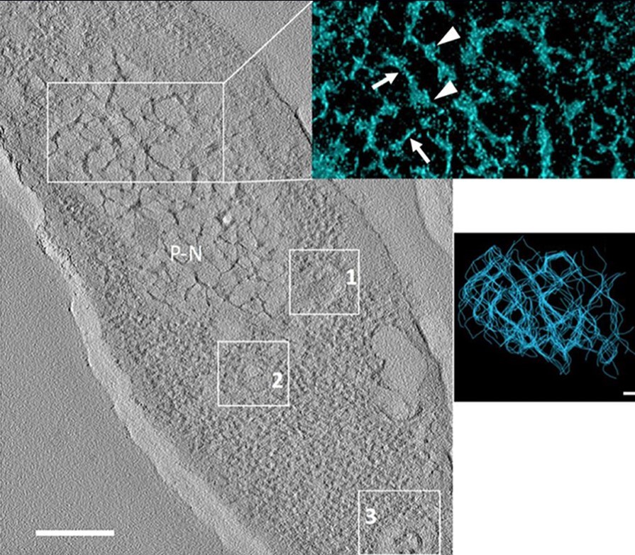 Новые бактериофаги появляются спустя 30 минут после начала инфицирования. Чтобы исследовать строение зрелого псевдоядра на этом этапе, ученые использовали 3D-электронную микроскопию, или электронную томографию. Они показали, что трехмерная организация фаговой ДНК внутри псевдоядра напоминает сеть из ДНК-белковых комплексов. Вероятно, это отражает сложный механизм компактизации фаговой ДНК, похожей на упаковку ДНК эукариот.
