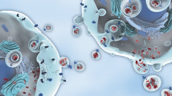 Клетки нашего тела «общаются» друг с другом через кровяное русло, в которое они выделяют определенные сигнальные молекулы. Чтобы эти молекулы дошли до адресата, они заключаются в специальные внеклеточные везикулы, маленькие наноразмерные пузырьки. Везикулы выполняют роль системы доставки. Наполнение везикул от здоровых и больных клеток различно, на этом и основана диагностика. Везикулы, секретируемые нездоровыми клетками, содержат целый ряд различных биологических молекул — биомаркеров заболевания. Их изучение позволяет, помимо диагностики, также проводить мониторинг лечения, анализируя динамику изменения количества везикул, содержащих выбранные маркеры.