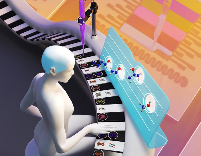Иллюстрация работы: интеллектуальная система, объединяющая печатные технологии создания мультисенсорной системы, и искусственный интеллект для распознавания паров органических соединений. Источник: обложка журнала Sensors (Volume 22, Issue 9)