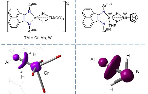Сотрудники ИМХ РАН показали, что стратегическое использование стерически затрудненного редокс-активного лиганда ArBIG-bian (ArBIG-bian = 1,2-бис[(2,6-дибензгидрил-4-метилфенил)имино]аценафтен) позволяет сформировать центры Al(μ2-H)2TM (TM = Cr, Mo, W, Ni, Er), стабильность которых обусловлена не одним классическим взаимодействием, а уникальным синергизмом трех факторов: ковалентного связывания в гидридных мостиках Al(μ2-H)2TM, прямого взаимодействия TM–Al и внутримолекулярного электростатического взаимодействия между локализованными формальными зарядами. В отличие от ранее известных систем, такое множественное связывание представляет собой исключительный случай. Предложенная модель связывания, подтвержденная детальными расчетами методом DFT, выгодно отличает полученные соединения от описанных ранее аналогов.