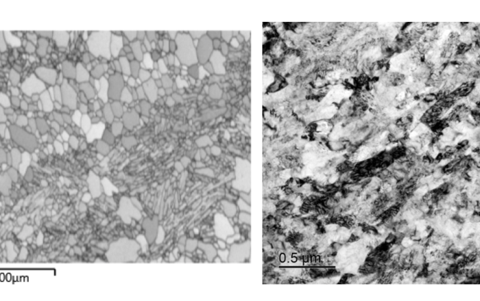Картинка: микроструктура крупнозернистого сплава ПТ3В в исходном состоянии (слева) и после деформационной обработки (справа). Источник: ННГУ
