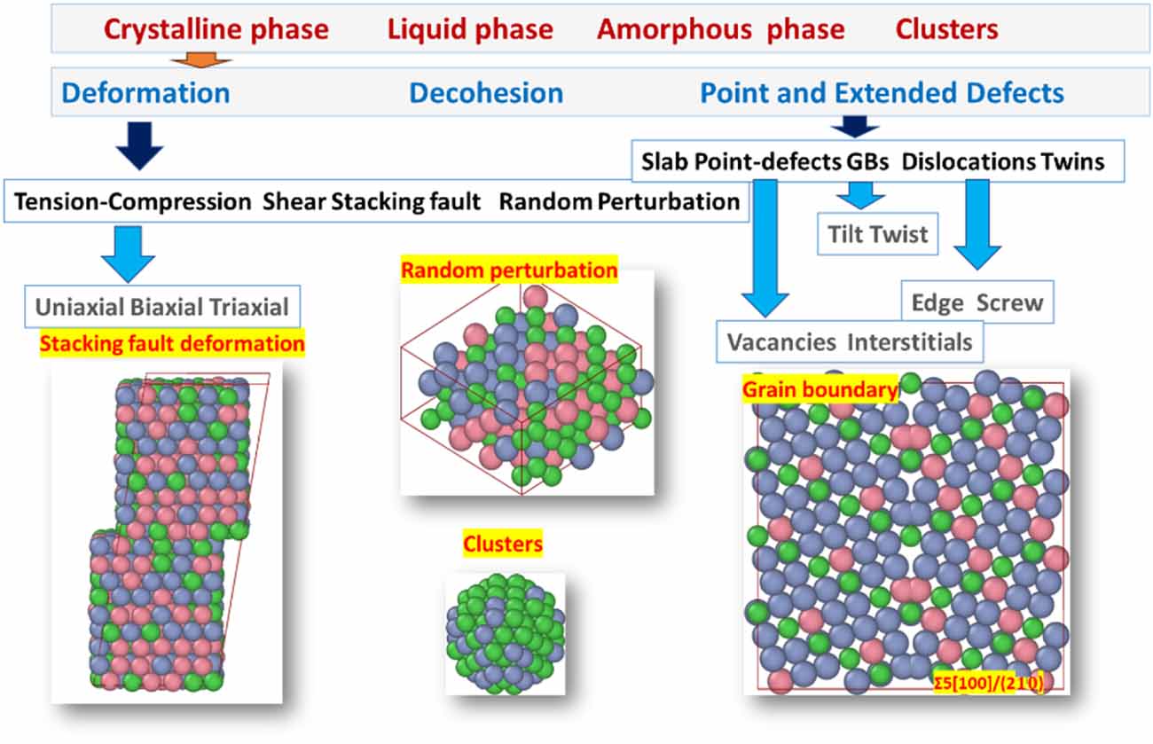 Создание базы данных для тройного сплава: база данных включает идеальные кристаллические структуры, деформированные структуры и дефектные структуры (точечные и протяженные дефекты) в различных составах сплава. Источник: Modelling and Simulation in Materials Science and Engineering.