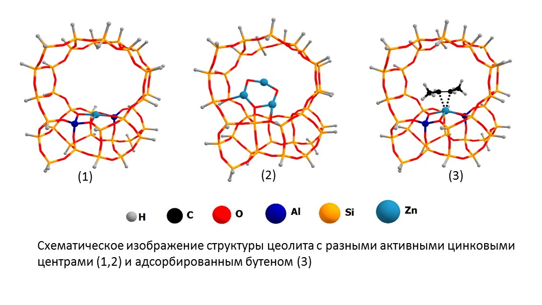 Цеолитные катализаторы традиционно используются в нефтехимии. Это природные или синтетические твердые материалы, алюмосиликаты, особенность которых – наличие наноразмерных полостей и каналов строго определенной геометрии. Цеолиты обладают важным в плане катализа свойством — молекулярно-ситовым эффектом: когда размер молекул участвующих в реакции веществ сопоставим с размером пор, в которых происходят химические превращения, то можно получить очень высокую селективность (способность катализатора избирательно увеличивать скорость целевой реакции – прим.) по нужному реагенту и продукту. Несмотря на то, что эти материалы давно применяются для переработки углеводородного сырья, свойства металл-модифицированных цеолитов применительно к активации и каталитическому превращению легких алкенов изучены недостаточно.