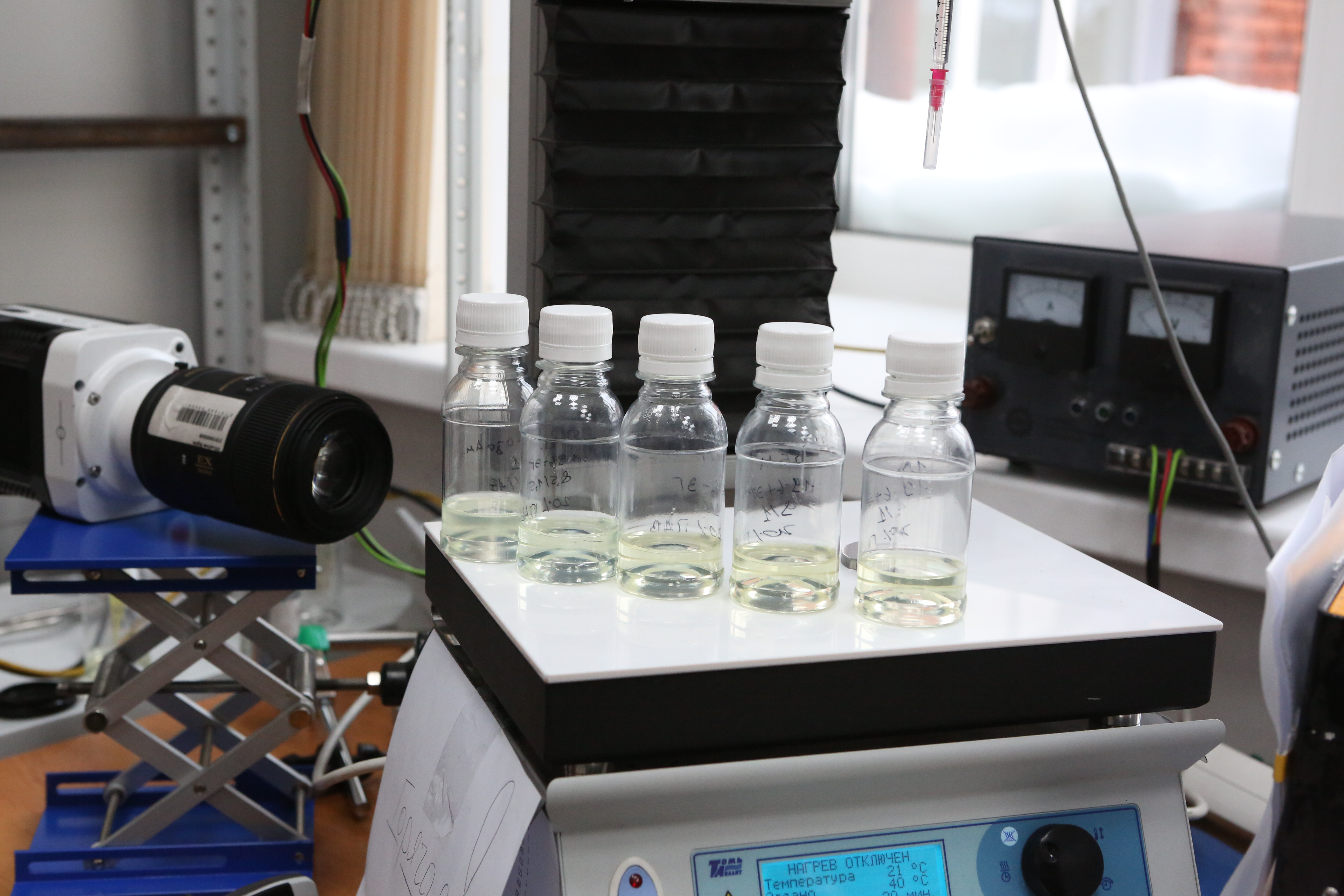 «Нам важно обеспечить стабильное состояние микроэмульсии как можно дольше в условиях существенных колебаний температуры среды для исключения разделения фаз топлива, например, при работе двигателя. Это нетривиальная задача, потому что в состав мы добавляем водную фазу. У дизеля и воды совершенно разные плотности, по идее они должны существовать отдельно. Плюс все, кто изучал в школе точные науки, помнят — при температуре ниже 0 °С вода должна замерзать. Но наши эксперименты показывают, что использование специальных эмульгаторов при создании микроэмульгированных систем позволяет добиться стабильности этих микроэмульсий даже при отрицательных температурах. На сегодня нами получены образцы топлива, которое стабильно и при хранении не разделяется на дизель и воду. А значит, его можно будет довольно долго хранить в бензобаке или топливных резервуарах. Наши образцы остаются термически стабильными при той же температуре, при которой наступает помутнение дизельного топлива (в нашем случае это -21°С), после которого оно уже нормально не функционирует. Наша задача — не добиваться какого-то более низкого значения, а определить способы, которыми можно регулировать термическую стабильность микроэмульгированных топлив и установить их эффективность».
