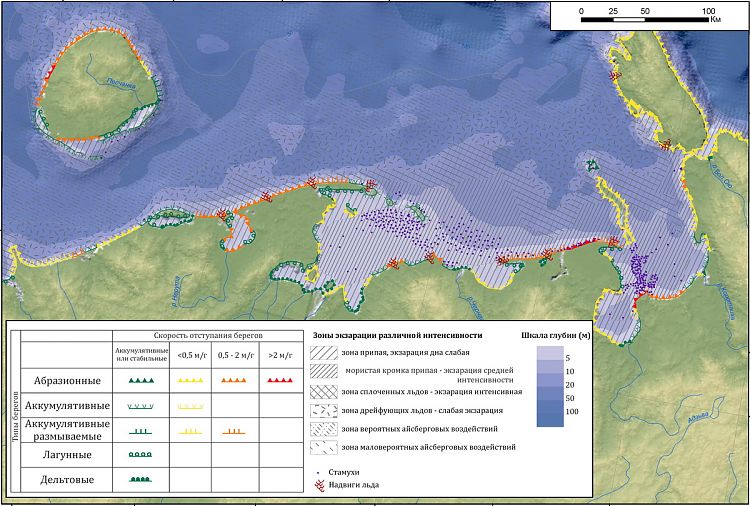 В настоящее время начинается новый этап освоения отдаленных месторождений на побережье и шельфе арктических морей. Масштабы развития абразионных и ледово-экзарационных процессов могут существенно осложнить условия строительства и эксплуатации различных сооружений как на берегах, так и на шельфе: нефтенакопительных терминалов, буровых и добывающих платформ, подводных трубопроводов, портов, других производственных и жилых объектов инфраструктуры. Обустройство месторождений и создание инженерных объектов, необходимых для хранения и транспортировки углеводородов в суровых условиях Арктики, диктует необходимость полноценного учета природных факторов. Именно они во многом определяют геотехническую безопасность как самих объектов, так и экологическую безопасность прилегающих к ним территорий и акваторий.