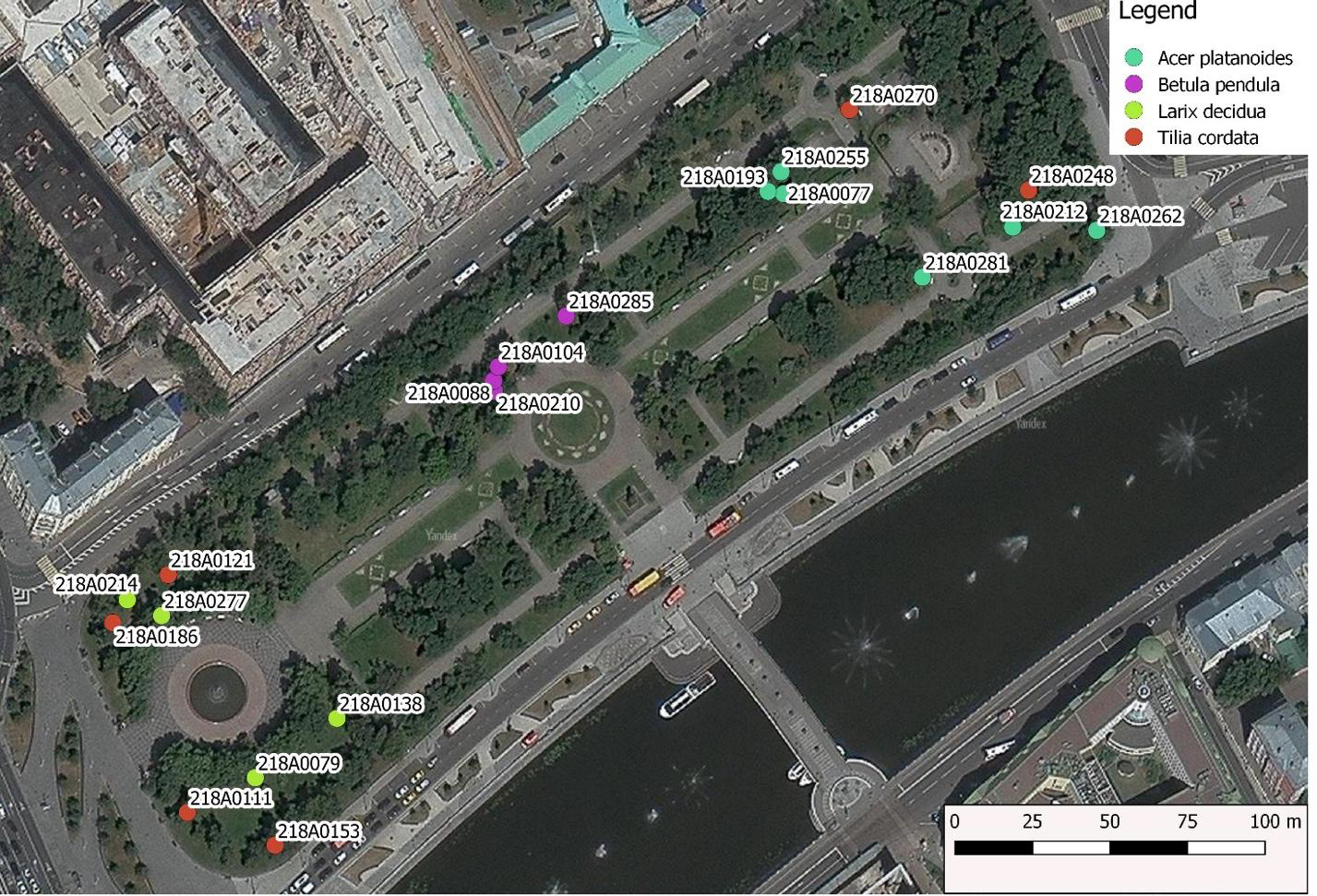 Объектом данного исследования была выбрана зеленая зона на Болотной площади, и неслучайно: парк подвержен сильному тепловому и антропогенному влиянию. Для замера ключевых параметров экологии и физиологии деревьев ученые использовали недорогие беспроводные устройства TreeTalker+, ранее разработанные коллегами из Италии. Устройства были прикреплены к 16 деревьям: лиственницам, липам, березам и кленам. Еще одно устройство выступало в роли датчика сравнения и было размещено в парке вне кроны деревьев. Каждый TreeTalker+ оснащен спектрометрами для анализа пропускания света через крону, датчиками для определения температуры и влажности воздуха в окружении конкретного дерева. Также устройства определяли диаметр ствола с помощью инфракрасного оптического датчика и скорость сокотечения по рассеиванию тепла. Данные от каждого устройства поступали в облачное хранилище, откуда попадали в онлайн-базу. Мониторинг проводили с июля по ноябрь с фиксацией ключевых параметров каждые полтора часа.