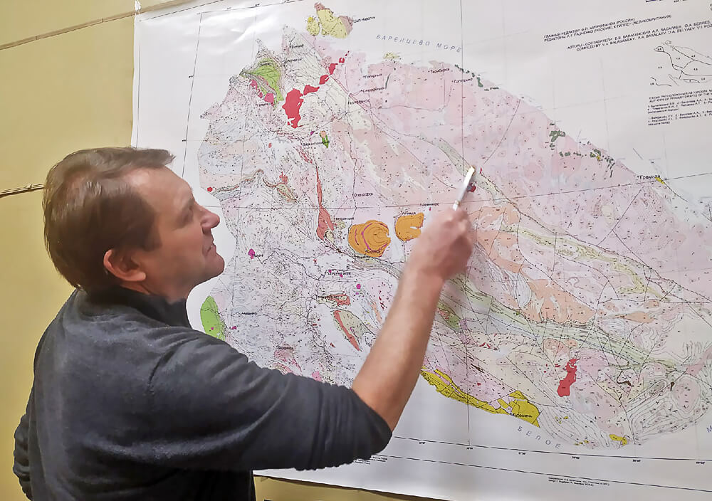 – Вначале, как правило, на неисследованной территории проводят геологическую съемку: делают геологическое описание обнажений, отбирают образцы пород, затем составляют геологическую карту местности. Если в исследованных районах обнаружена рудная минерализация, обычно организуют целенаправленные комплексные экспедиции. Вот так однажды при проведении съемки и была обнаружена золотая минерализация. Конечно же, это были не кристаллы и не золотой песок. Золото находилось лишь в составе пиритов и других сульфидных минералов, из которых его можно извлекать путем обогащения. После открытия рудопроявлений или месторождений золота должно быть экономическое обоснование о целесообразности их разработки. Пока задач углубленного и целенаправленного поиска на Кольском полуострове правительство перед нами не ставит: в стране достаточно крупных месторождений золота, которые уже разрабатываются.