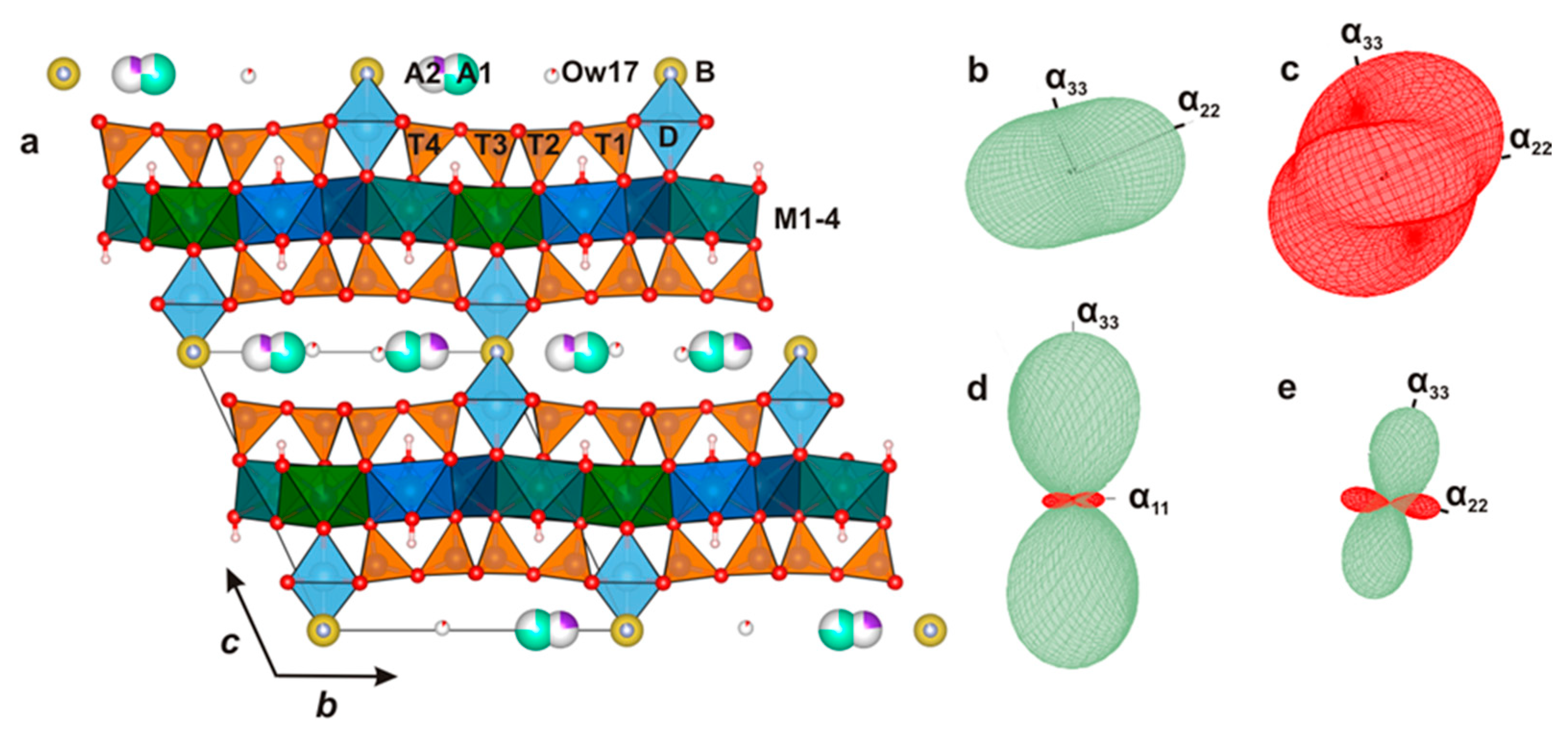 Кристаллическая структура изученных минералов и фигуры коэффициентов термического расширения. Источник: Елена Житова