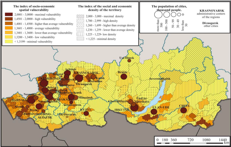 Картинка: комплексная пространственная уязвимость муниципальных образований Южной Сибири по данным на 2017 год. Источник: Светлана Бадина