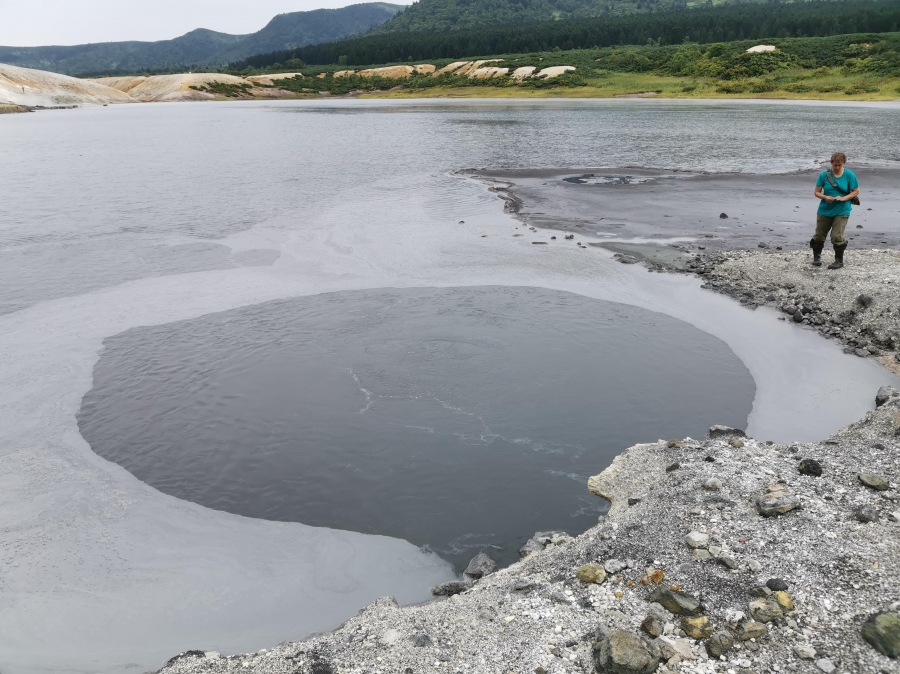 Все, что мы обнаружили в этом году, требует дополнительных исследований и умозаключений. Озеро Кипящее в кальдере Головнина - один из наиболее интересных объектов, с которым еще предстоит работать. Уникальность этого озера состоит в том, что по сути, это - большой термальный источник, который частично разбавляется холодной речной водой. У его берегов и в центре озера есть несколько воронок, из которых поднимается горячая, насыщенная газами, вода. Я знаю только одно подобное озеро, но оно находится на соседнем острове Хоккайдо, в Японии.