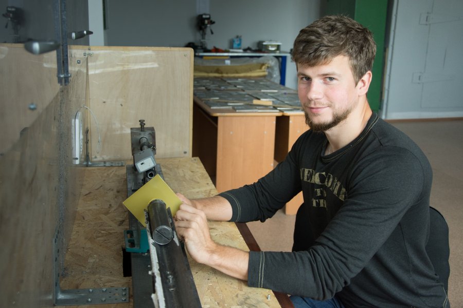 «Маски современных поездов, выполненные из композитных материалов, часто подвержены ударам во время движения. Перед нами была поставлена задача – изучить, как влияют ударные воздействия на пластину из композитного материала при штатной эксплуатационной нагрузке. Мы растягивали образец, т.е. создавали напряженное состояние и после этого производили по нему удар и определяли баллистические свойства», – рассказывает один из авторов проекта Михаил Жихарев.