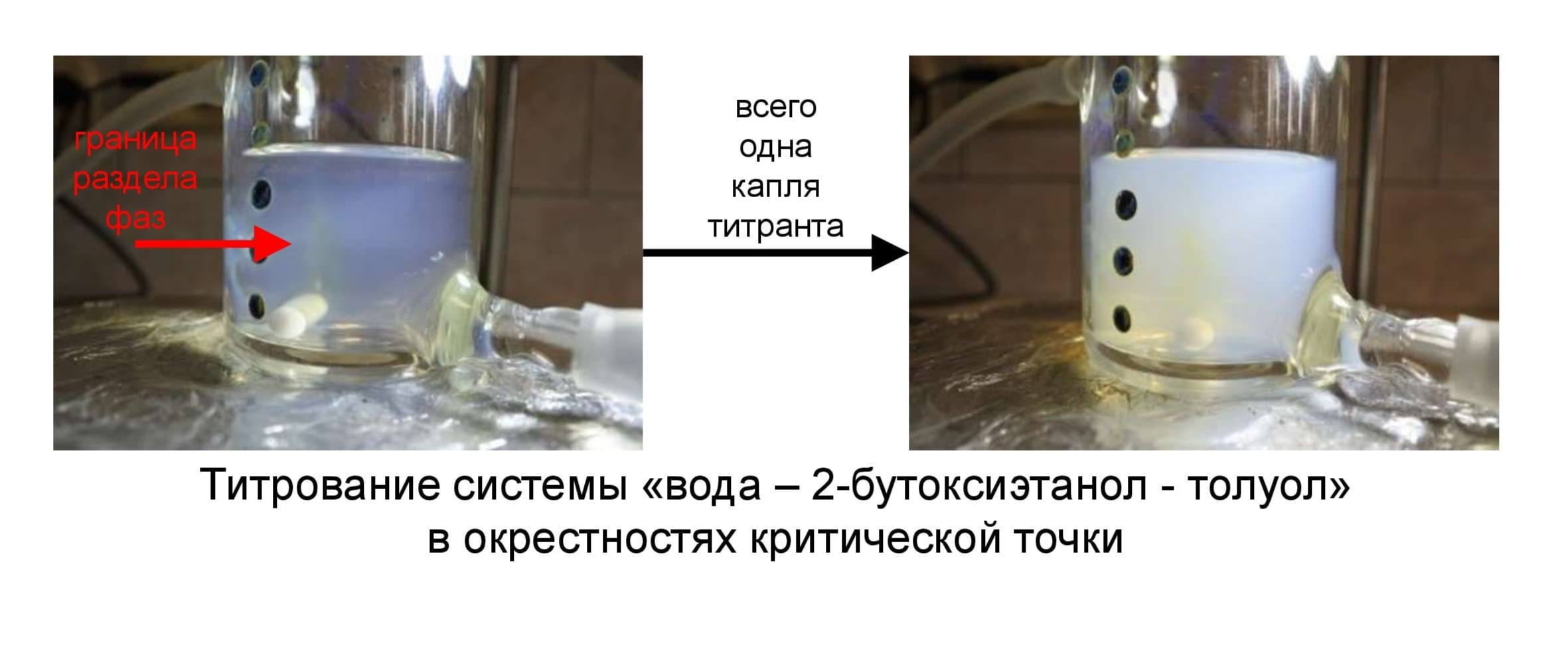 Сначала исследователи, добавляя бутоксиэтанол к смесям воды и толуола («масло») в разных соотношениях, определили, при каких концентрациях бутоксиэтанола пропадает расслоение между водой и маслом. Если сравнивать значения этих концентраций с более ранними экспериментами для трет-бутанола, то можно заключить, что бутоксиэтанола нужно меньше, а потому он более эффективно растворяет толуол в смеси с водой.