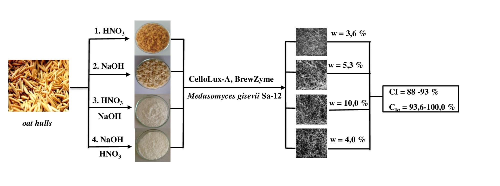 Схема процесса получения бактериальной целлюлозы из овсяной шелухи. Источник: Вера Будаева