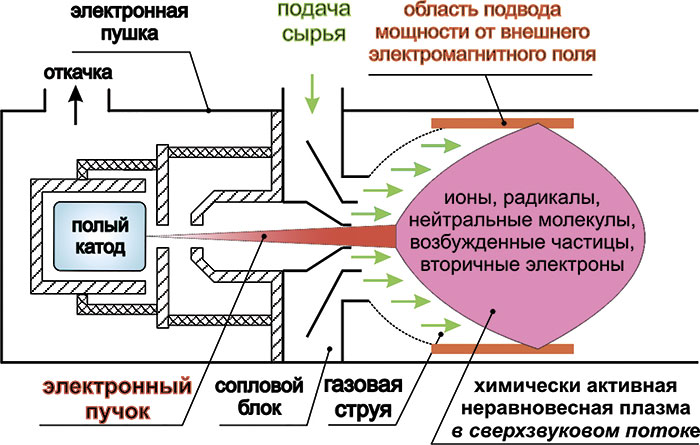 – Они предусматривают изучение сложного комплекса явлений и процессов в холодной плазме при воздействии электрических и магнитных полей, пучков заряженных частиц, сверхзвуковых потоков. Известно, что эффективность химических процессов зависит от температуры: чем она выше, тем быстрее они протекают. Требование вроде бы понятное, лежащее на поверхности, однако до сих пор трудно осуществимое. Ведь по известному закону Аррениуса скорость реакции в холодной плазме мала, поэтому большая часть выделяемой энергии расходуется фактически впустую. В результате эти технологии до сих пор были малоэффективны. А мы предлагаем воздействовать на плазму внешним источником ионизации – электронным пучком, что приводит ее в состояние неравновесной холодной плазмы с большим числом высокоэнергетических электронов, они могут ускорить реакции чуть ли не в тысячу раз.