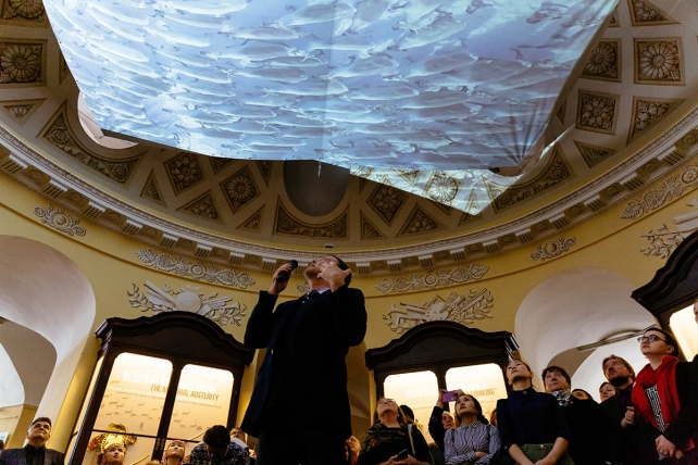 "Выставка стала итогом совместного пятилетнего проекта с Российским научным фондом по экспедициям на Кольский полуостров, Ямал и Чукотку, с тем чтобы сопоставить разные школы кочевания. Результатом экспедиций также стала большая книга "Арктика - атлас кочевых технологий", но, поскольку проект завершили с высокими результатами, мы их решили преобразовать еще и в выставку", - рассказал собеседник агентства.