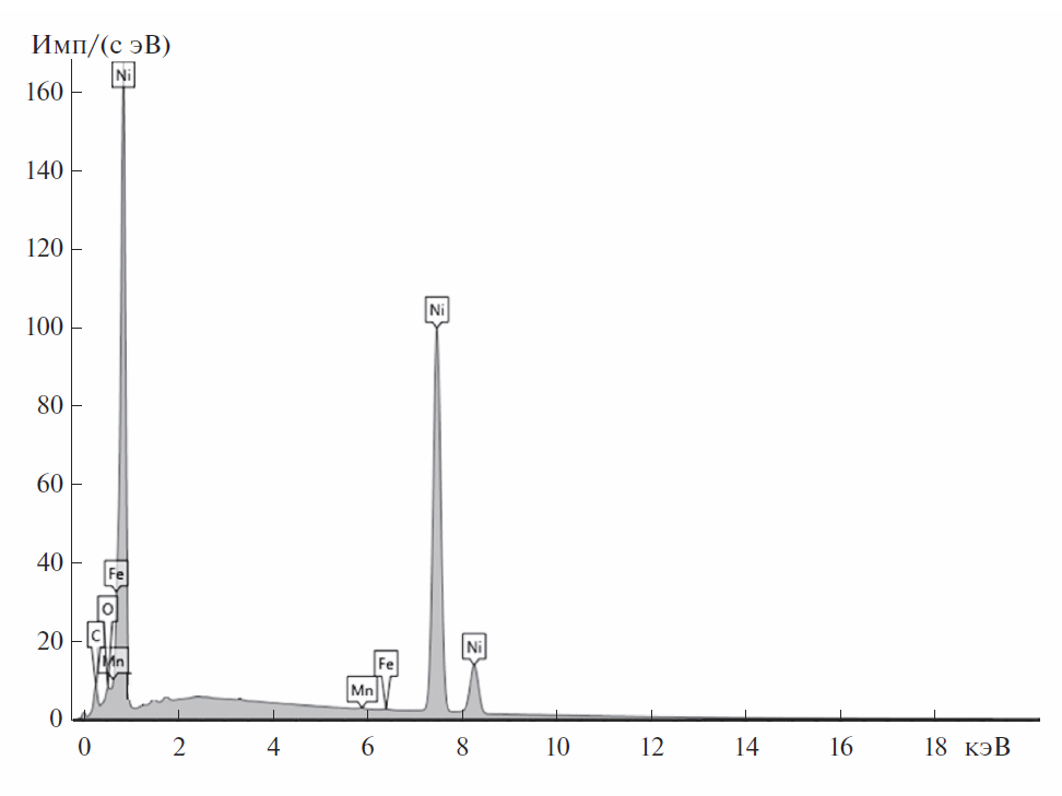 Спектр элементного состава образца из никеля с осажденным слоем атомов Fe и Cr из нержавеющей стали. Источник: ООО «ИнноПлазмаТех»
