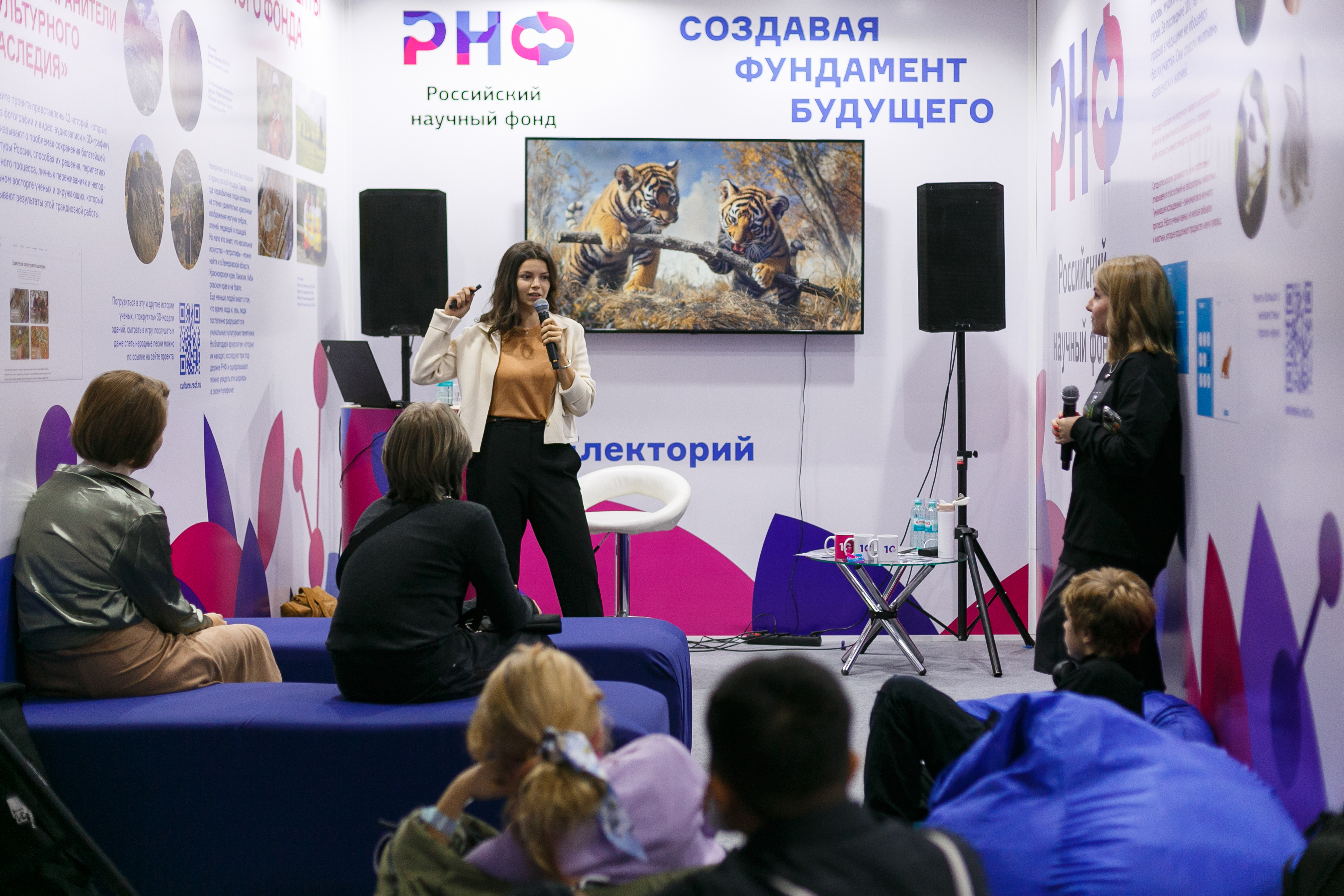 Выставка «Посмотри и потрогай»: выставка научных объектов, с которыми работают российские ученые. Все желающие смогут подержать портативный ранозаживляющий биопринтер в виде пистолета, рассмотреть водоросли в настоящем биореакторе и чашках Петри и посмотреть завораживающие видеоролики, представляющие различные исследования при поддержке РНФ.