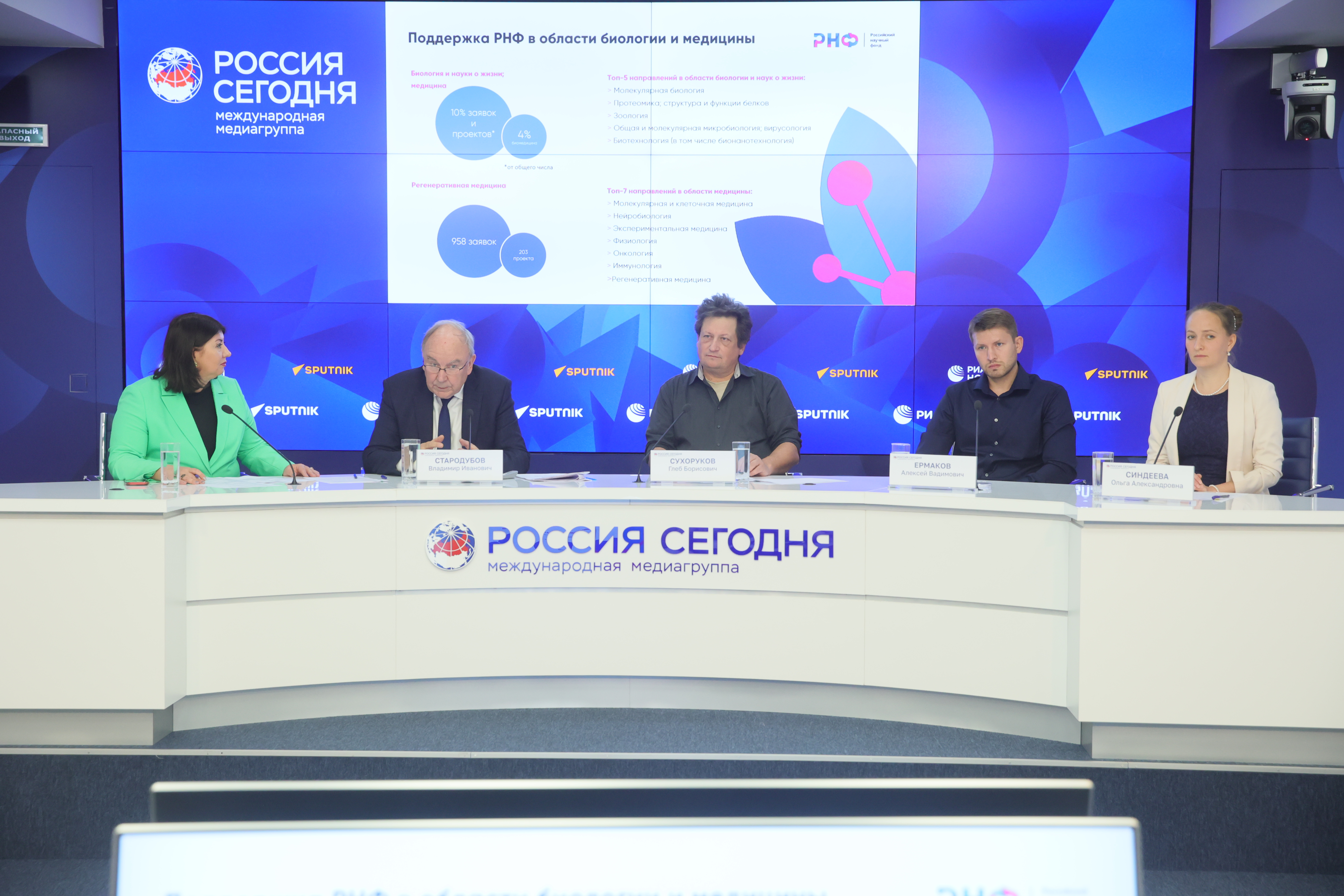 В пресс-конференции приняли участие: кандидат физико-математических наук, профессор Сколтеха, научный директор Научно-исследовательского центра LIFT, грантополучатель РНФ Глеб Сухоруков; кандидат физико-математических наук, заведующий лабораторией Сеченовского университета, старший научный сотрудник Научно-исследовательского центра LIFT, грантополучатель РНФ Алексей Ермаков, кандидат биологических наук, старший научный сотрудник Сколтеха Ольга Синдеева, член президиума РАН, доктор медицинских наук, научный руководитель Центрального научно-исследовательского института организации и информатизации здравоохранения Минздрава России, координатор секции фундаментальных исследований для медицины экспертного совета РНФ по региональным конкурсам Владимир Стародубов.